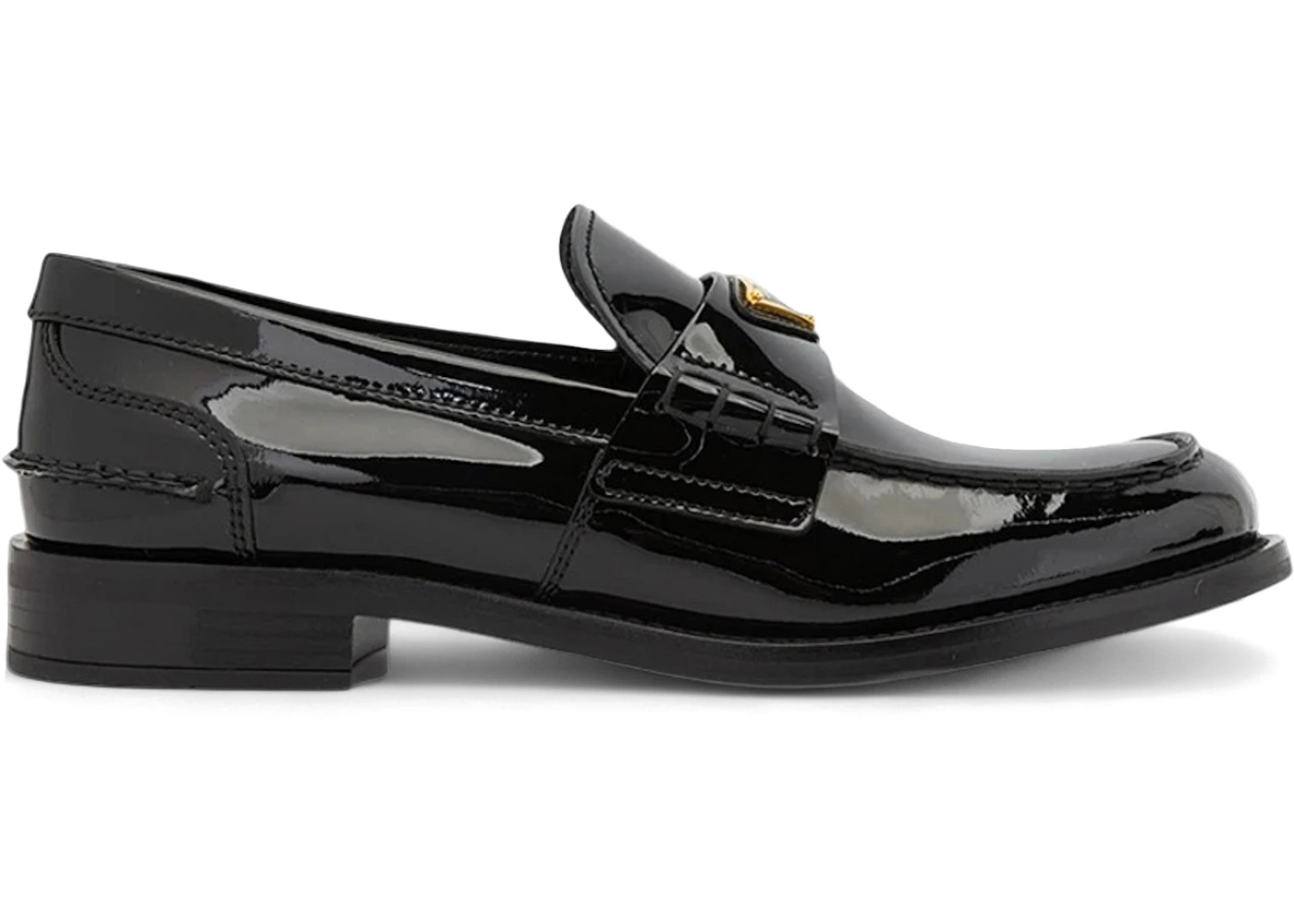 Prada Brushed Leather Loafers Black Patent (Women's)