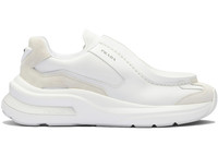 Prada Brushed Leather Sneakers Bike Fabric Suede White