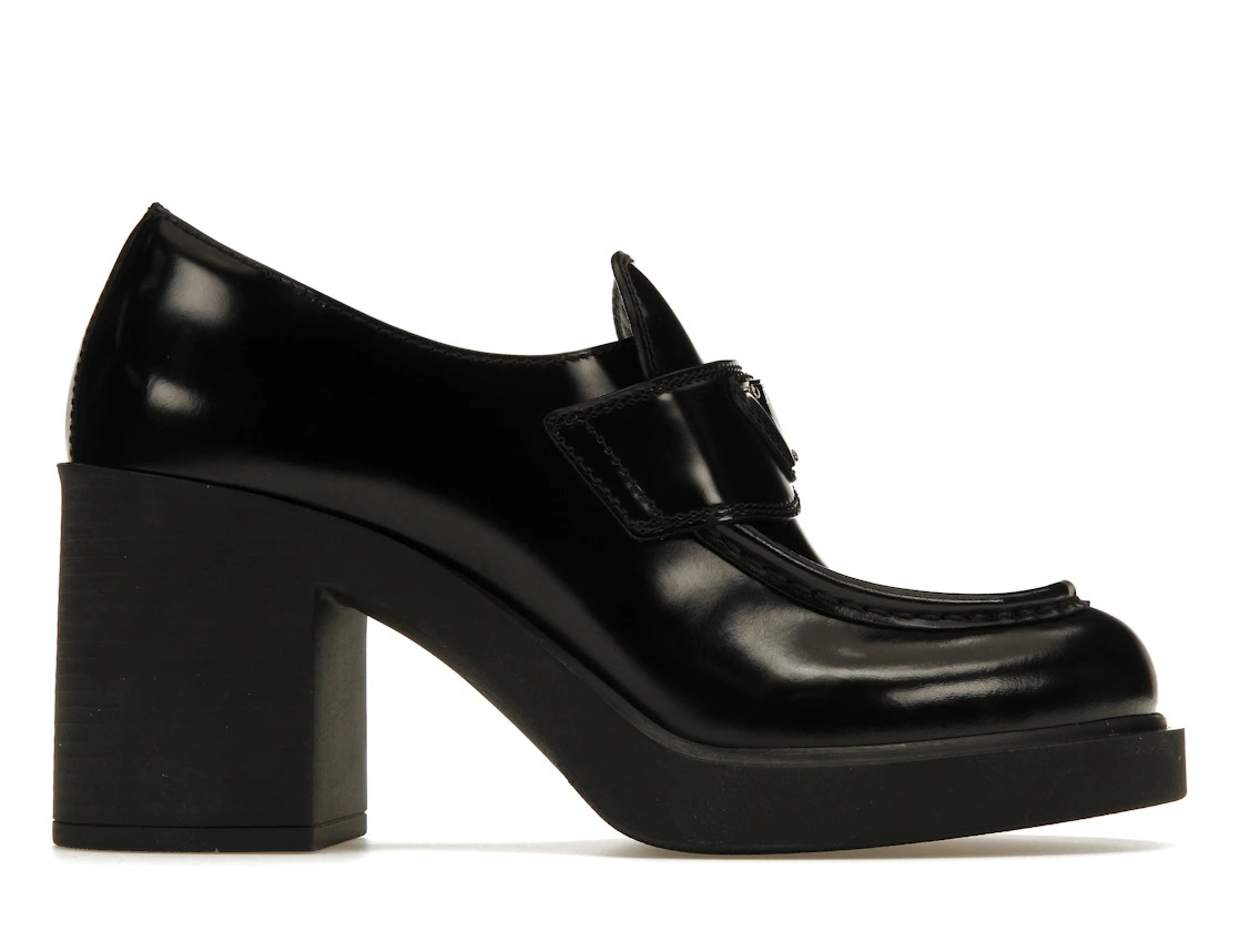 Prada Chocolate High-Heeled 85mm Loafers Black Brushed Leather
