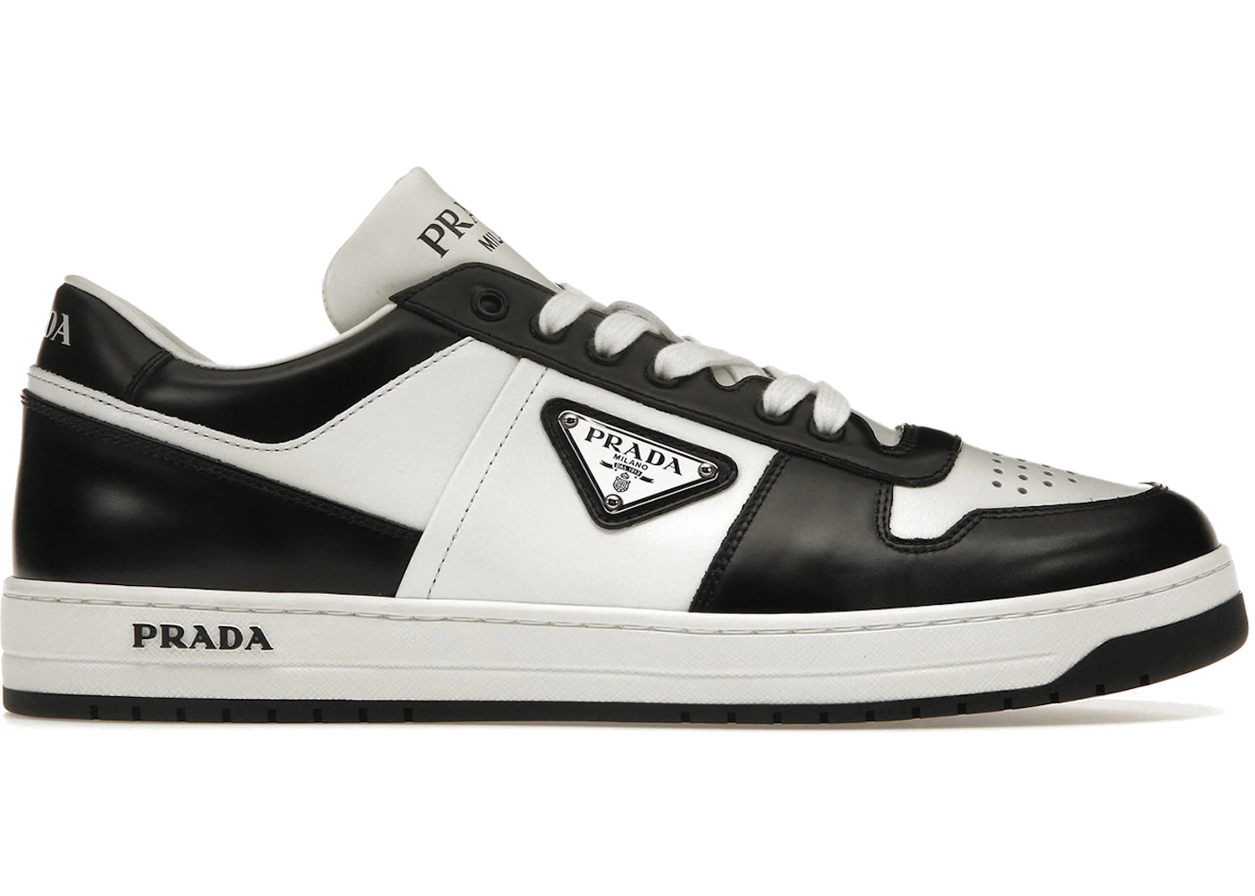 Prada Downtown Leather Low Top Sneakers White Black (Women's)