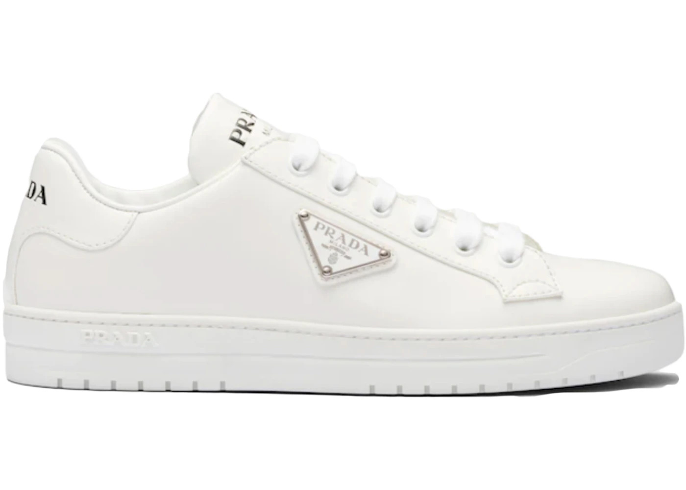 Prada Downtown Low Top Sneakers Leather White Silver (Women's)