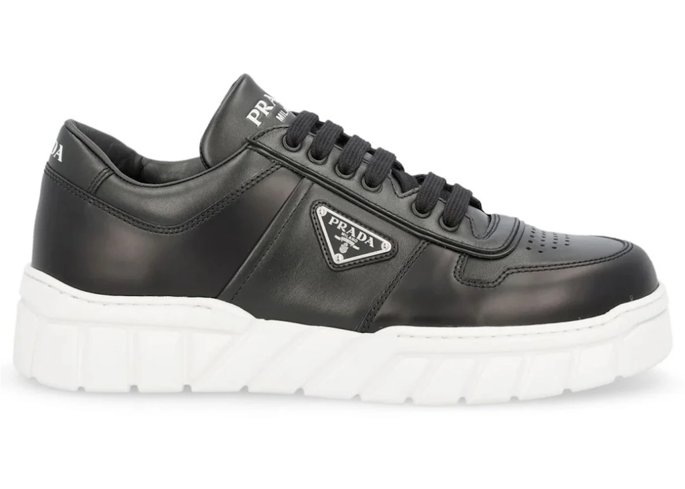 Prada Logo Plaque Lace Up Sneakers Black White