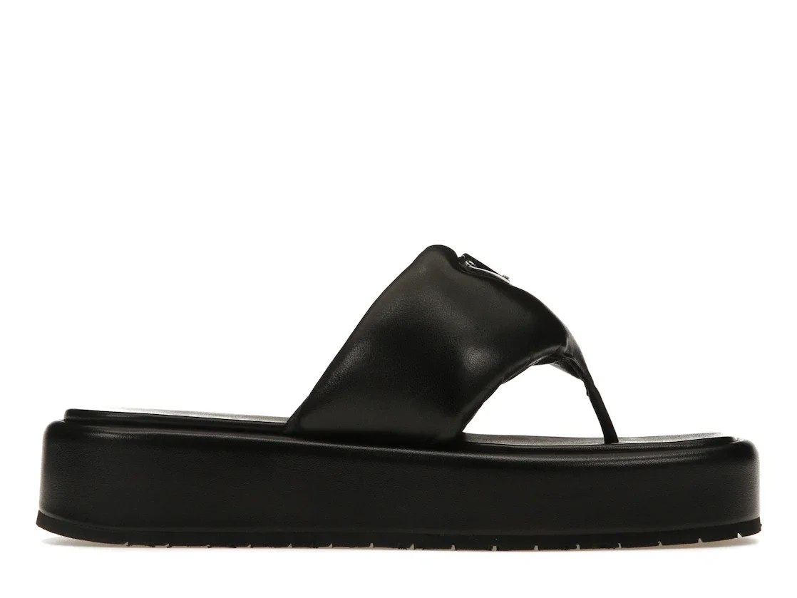 Prada Soft Padded 35mm Thong Wedge Sandals Black Nappa Leather