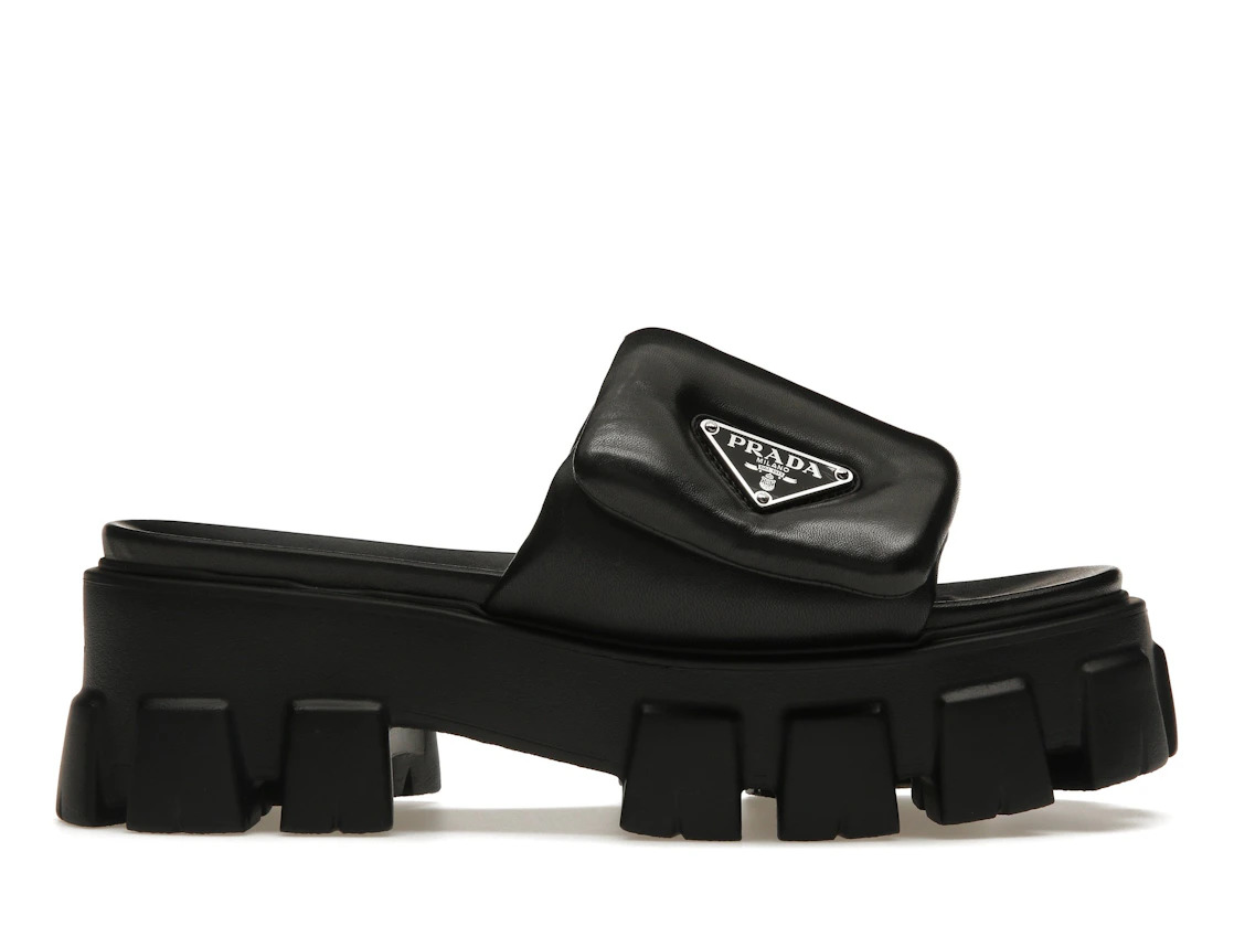 Prada Soft Padded 55mm Strap Sandals Black Nappa Leather