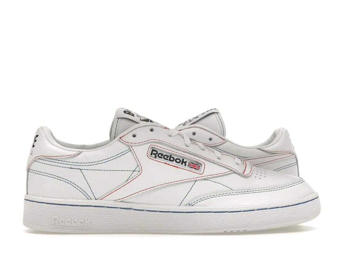 The Reebok Club C 85 Bape White Contrast Stitch features a smooth white leather upper with multi-color contrast stitching that depicts Bape's signature Ape camo. Bapesta branding at the heel and woven tongue tag celebrates Bape's renowned sneaker collection. At the base, a matching white sole completes the design. The Reebok Club C 85 Bape White Contrast Stitch released in January of 2022 and retailed for $150. - Style Q47367 - Colorway White/White/Contrast - Retail Price 150 - Release Date 2022-01-15 - Featured false