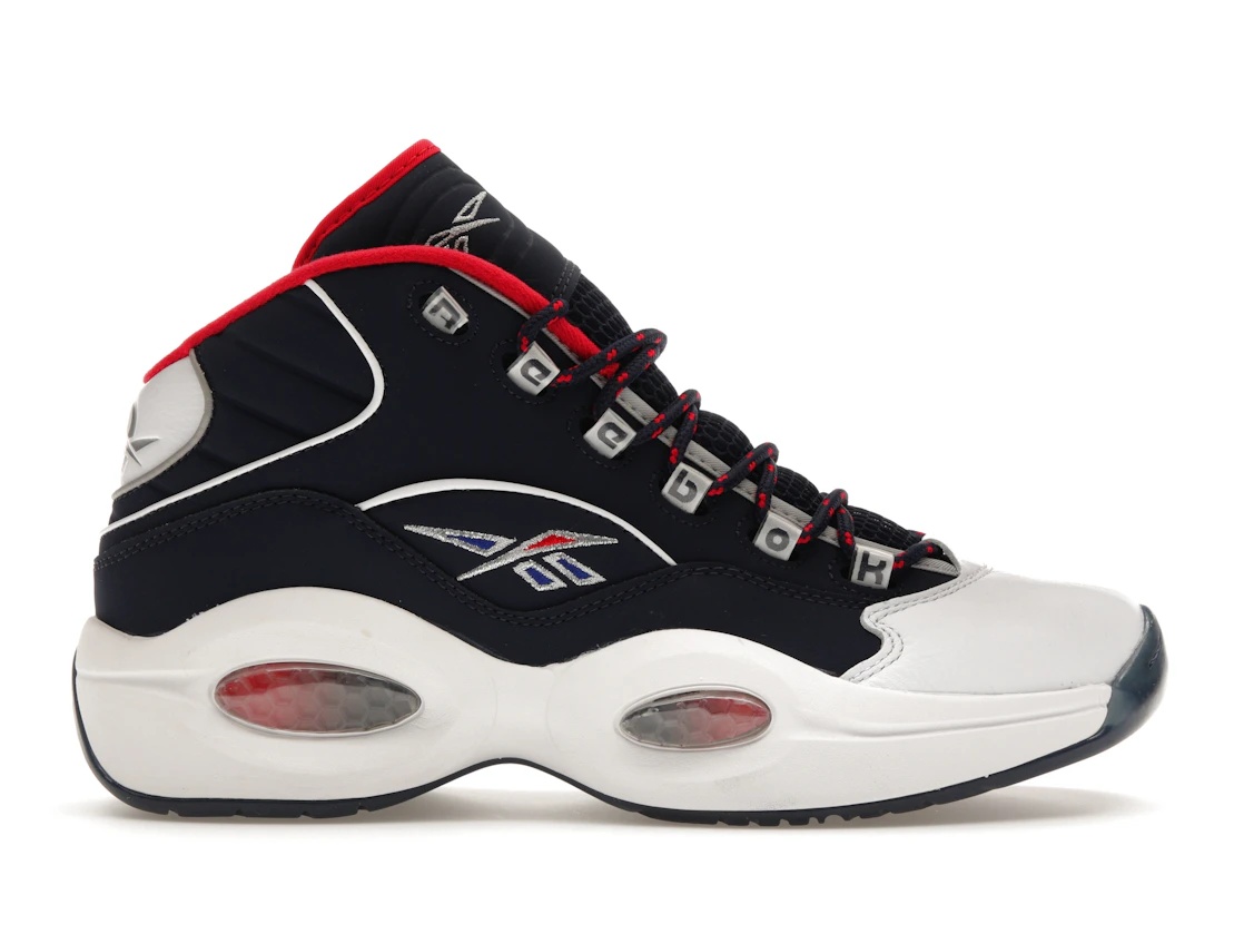 Allen Iverson represented the U.S. as part of the 2004 Olympic team that competed in Athens. While the team didn't take home the gold metal that year, Reebok still honored Iverson almost two decades later by releasing the Reebok Question Mid Team USA. This shoe commemorates the time AI put in for the red, white, and blue to play for his country. This patriotic Reebok Question has an upper made out of leather, suede, and mesh that is covered with a Vector Navy color. It also has bright pops of white on the toe box, heel, midsole, and outsole along with small red accents on the laces and lining. There is metallic silver stitching as well that serves to tie the look of this entire sneaker together. But in our expert opinion, the most interesting thing about this sneaker is that it replaces AI's usual jersey number 3 with his Olympic jersey number 4 on the back. It helps differentiate this Question from other Questions that Reebok has put out in the past. The Reebok Question Mid Team USA was released on July 30, 2021, for a $140 retail price. - Style H01281 - Colorway Navy/White/Red - Retail Price 140 - Release Date 2021-07-30 - Featured false