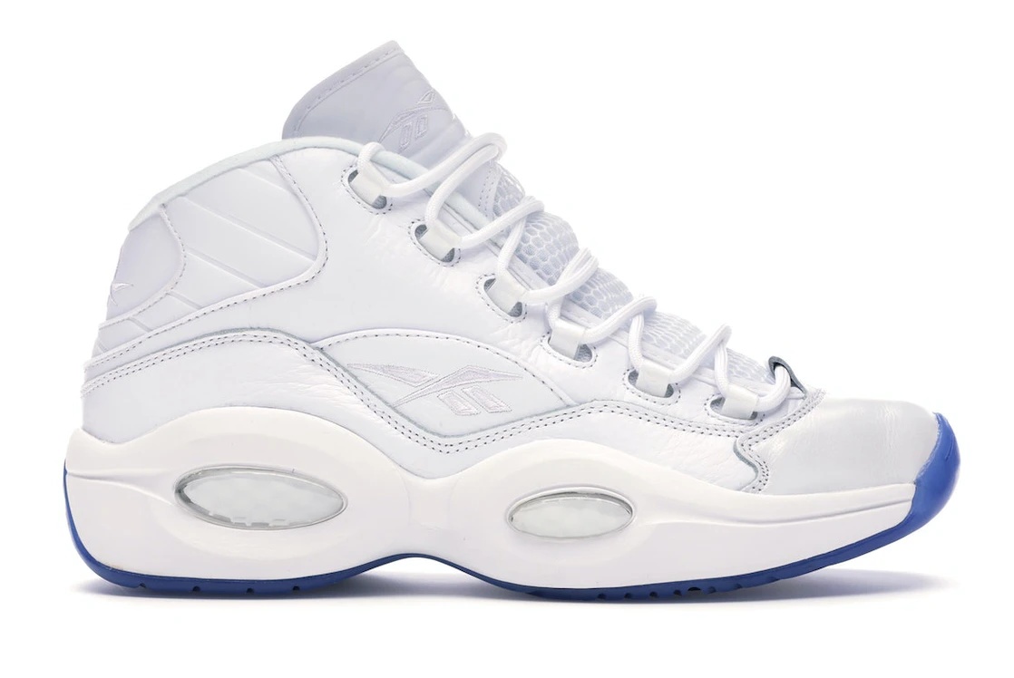 Allen Iverson’s first-ever signature sneaker, the Reebok Question, was released in 1996. Since then, it has been re-released in a variety of different colorways, including the Reebok Question Mid White Ice, which arrived nearly 25 years after the original. The White Ice version of the Reebok Question Mid is one of the brightest colorways of the sneaker ever unveiled. It had an all-white leather upper with white laces, a white tongue, and white AI and Reebok branding on the side panels and heels. Even the shoe's Hexalite hexagonal cushioning was white to match the rest of the sneaker. But our favorite part of this particular Reebok Question and the only thing that stopped the sneaker from being completely white was the icy blue rubber outsole. It helped add a small hint of color to the sneaker without dampening its glow at all. The Reebok Question Mid White Ice was released on March 19, 2020, for a retail price of $150. - Style EF7598 - Colorway White/White-Ice - Retail Price 150 - Release Date 2020-03-19 - Featured false