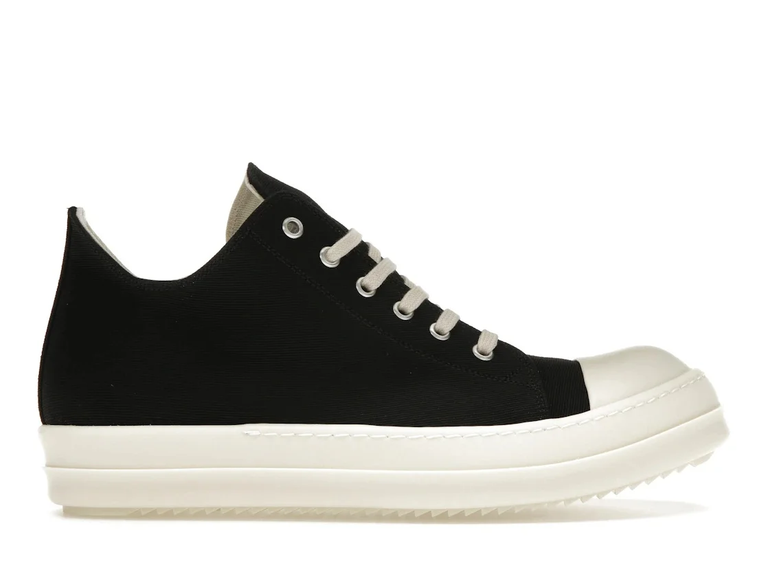 The Rick Owens DRKSHDW Lido Low Sneaks Black Milk is a low-top profile in black and milk-colored cotton barre with a shark-tooth rubber sole. The raw-edge collar and Gimp eyelets frame the foot, and the traction elements and organic cotton feel make them more comfortable. These Black Milk DRKSHDW Lido Low Sneaks by Rick Owens have a GOTS-certified cotton-barre upper, with vents on the inner foot and polyurethane-and-viscose toecaps. There are six Gimp eyelets, and flat cotton laces over a full-length cotton barre upper and a thermoplastic rubber shark-tooth chunky sole. The insole has a DRKSHDW logo. Here at StockX, one thing we love about these sneakers is the GOTS-certified cotton barre fabric, which offers a washed hand feel, and the shark-tooth rubber outsole that gives you multi-directional grip. The Rick Owens DRKSHDW Lido Low Sneaks Black Milk retailed at $570 when it was first released on March 26th, 2024. - Style DU01D1802CB-911 / DU01E3802CVS-911 / DU02E7802DO-911 / DU01F4802DO-911 - Colorway Black/Milk/Milk - Retail Price 570 - Release Date 2024-03-26 - Featured false - Requester Bryan F - Uploaded By MB
