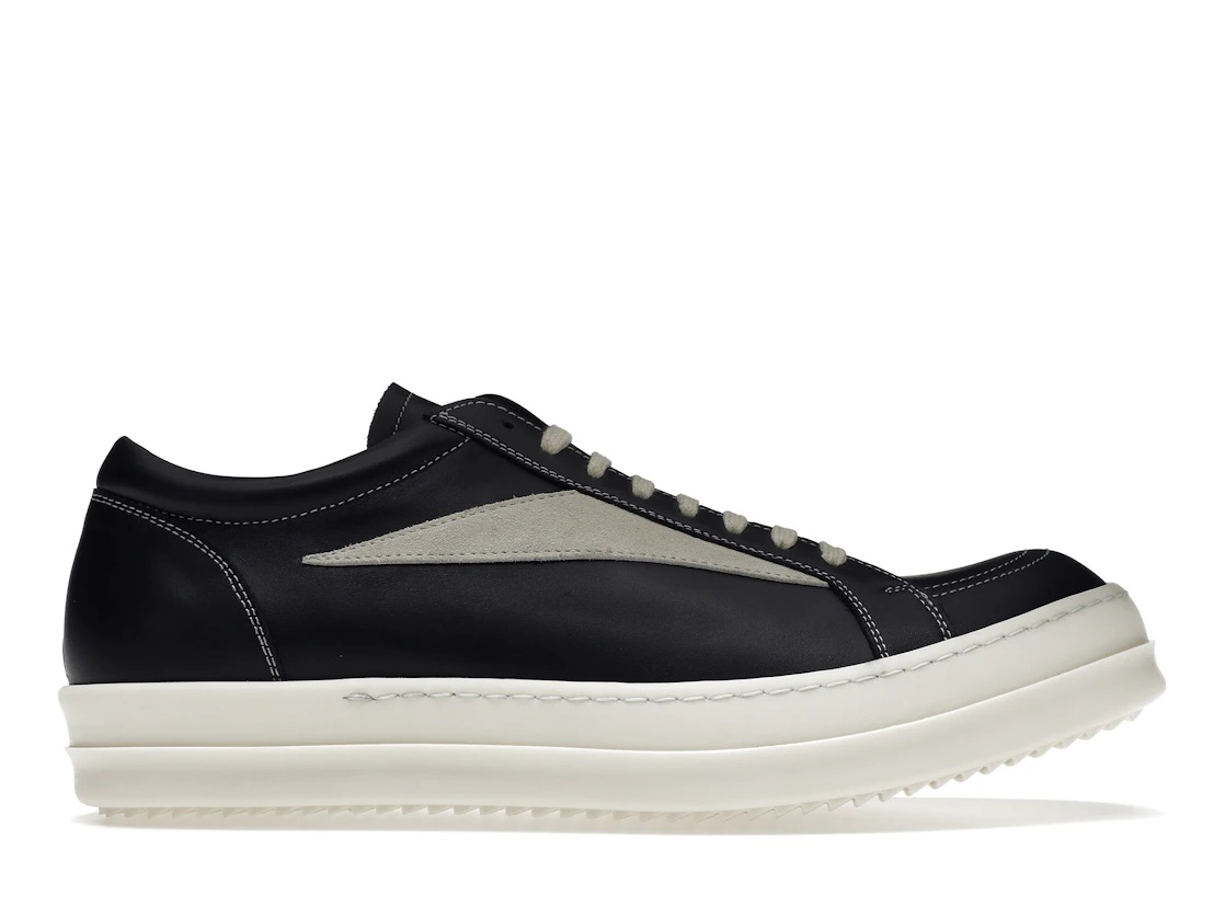 Indulge in the essence of avant-garde with the Rick Owens Vintage Sneakers in the classic Black/White colorway. A sneaker that transcends the norm, mirroring the iconic Vans Old Skool design yet carved with the indelible Rick Owens touch. This piece is more than a sneaker; it's a narrative of timeless elegance meeting urban ruggedness.The upper greets you with premium buffed calfskin leather, rendering a soft, luxurious feel with every stride you take. The contrasting white detailing is a bold statement against the stark black, embodying the dichotomy of classic and modern. Witness the fine Italian craftsmanship with every detail, from the classic lacing, leather lining to the durable rubber sole. The under-ankle height and suede applique at the sides reminisce the vintage aura, blending seamlessly with the modern-day street style.With a retail price of $920, step into a legacy of cool. Whether you're flaunting it on the streets or cherishing it in your collection, the Rick Owens Vintage Sneakers are not just a purchase; it's an investment in timeless style. - Style RU01C4897LPOLVS-991/RU02B2897LPOLVS-9081/RU02C7897LCGLVS-991/RU02C7897LCGLVS-911 - Colorway Black/White - Retail Price 920 - Release Date 2022-04-01 - Featured false