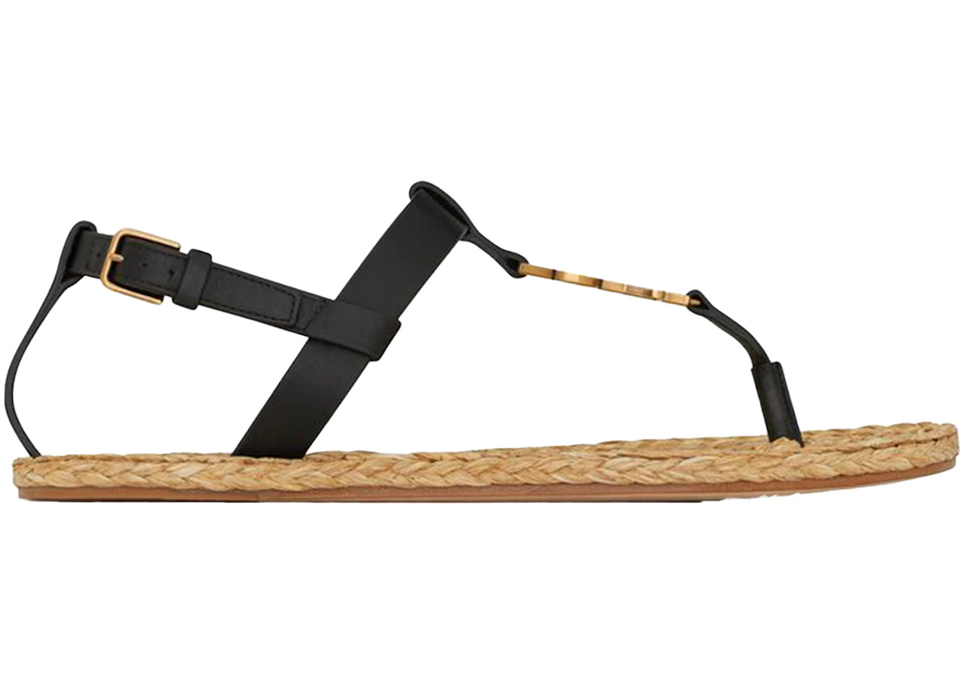 cassandra flat sandals in smooth leather with bronze-tone monogram