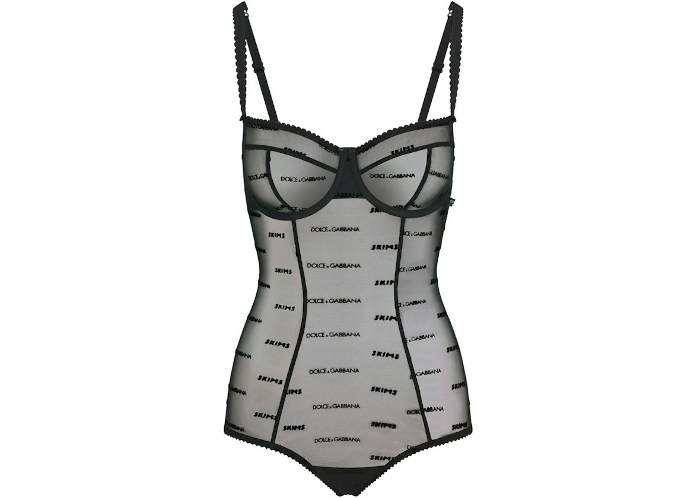 SKIMS x Dolce&Gabbana Ultra Fine Mesh Logo Brief Bodysuit Onyx