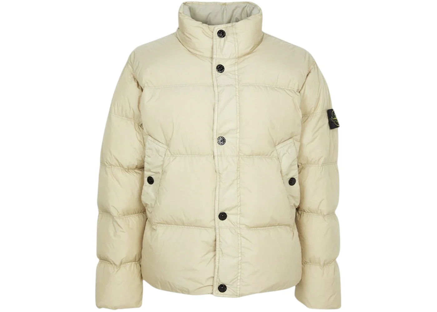 Stone Island Logo Patch High Neck Puffer Jacket Beige