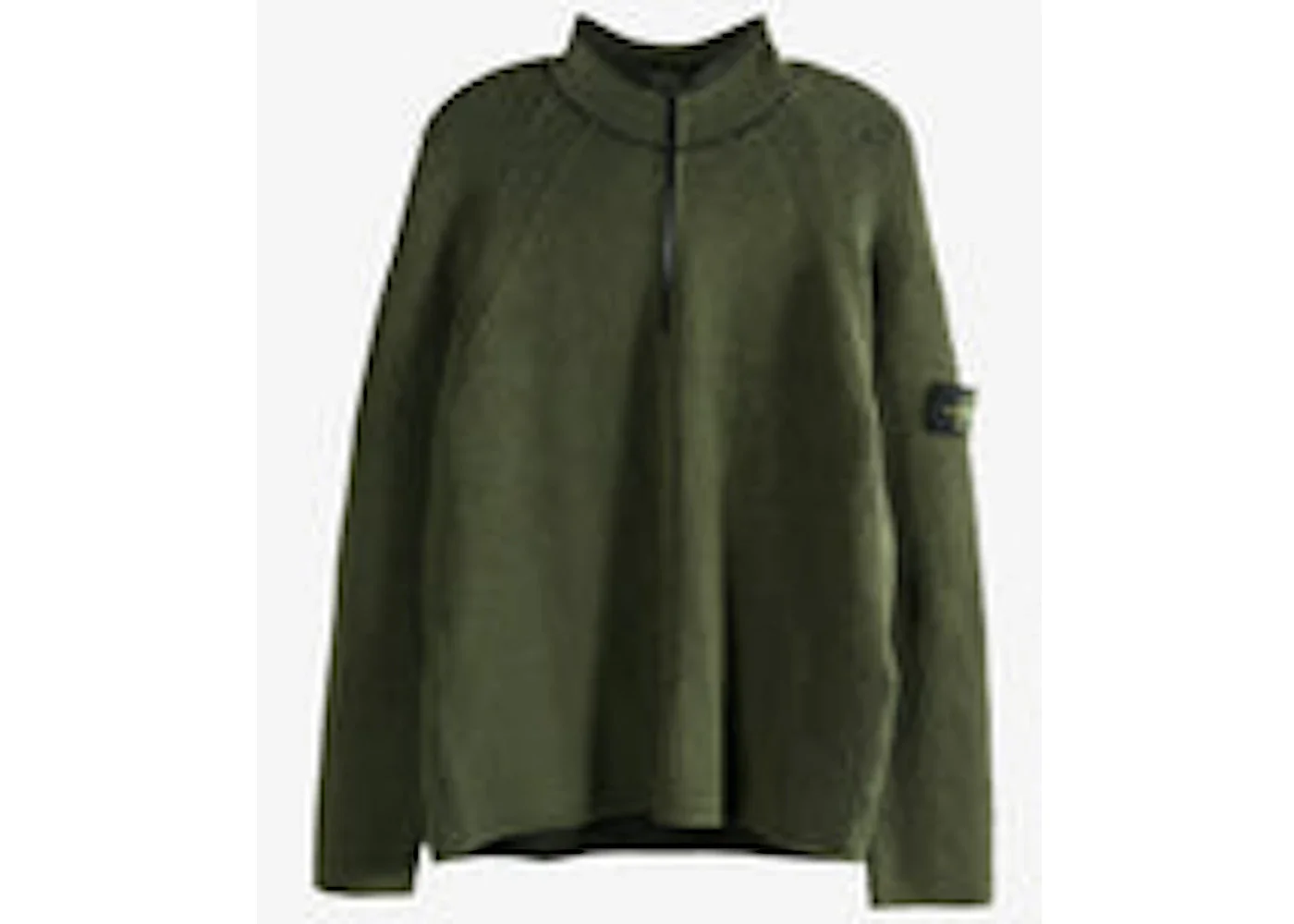 Stone Island Long Sleeves Half Zip Ribbed Polo Shirt Military Green