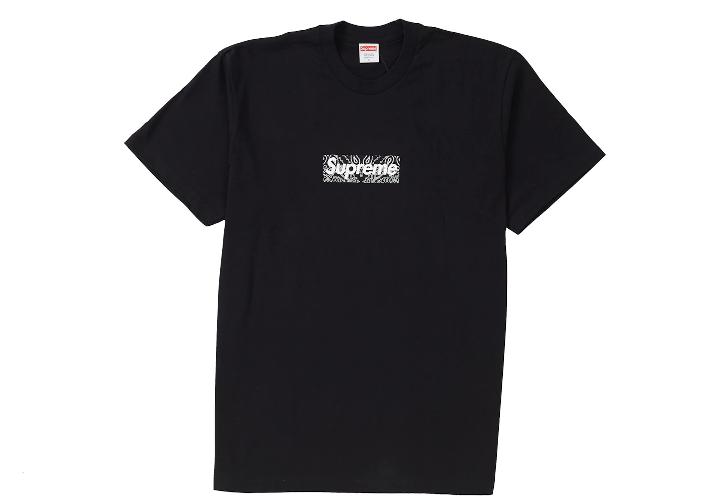 The Supreme Bandana Box Logo T-shirt was dropped on December 19th, 2020, as a part of the brand's FW19 Week 17 release. This release was the fourth box logo drop of the year and came just one week after Supreme dropped the Bandana Box Logos in hoodie form. The black version of the Bandana Box Logo feature's the black pattern-covered logo on a black t-shirt. The Supreme Bandana Box Logo T-shirt in black was made available at the retail price of $38 USD. - Season FW19 - Color Black - Release Date 2019-12-19 - Retail Price 38 - Featured false