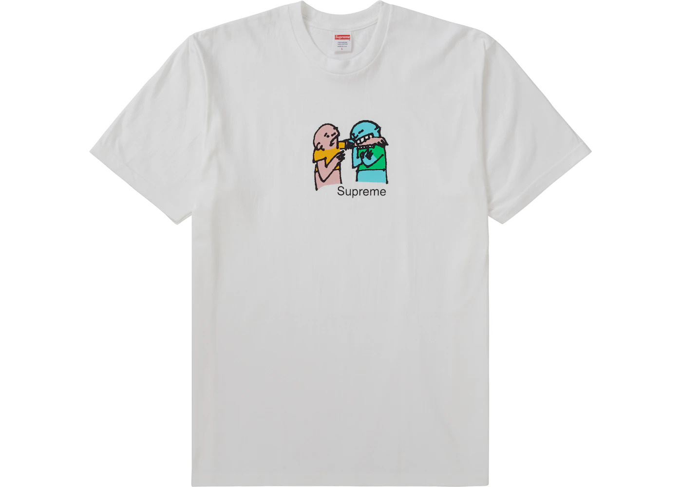 For their FW19 Week 17 release, Supreme released not only their Bandana Box Logo Tees but also an assortment of seven other winter tees. The Supreme Bite Tee released in seven different colorways and features a cartoon artwork of one person biting another persons arm. The Supreme Bite Tee released on December 19th, 2019 and retailed for $38 USD. - Season FW19 - Color White - Release Date 2019-12-19 - Retail Price 38 - Featured false