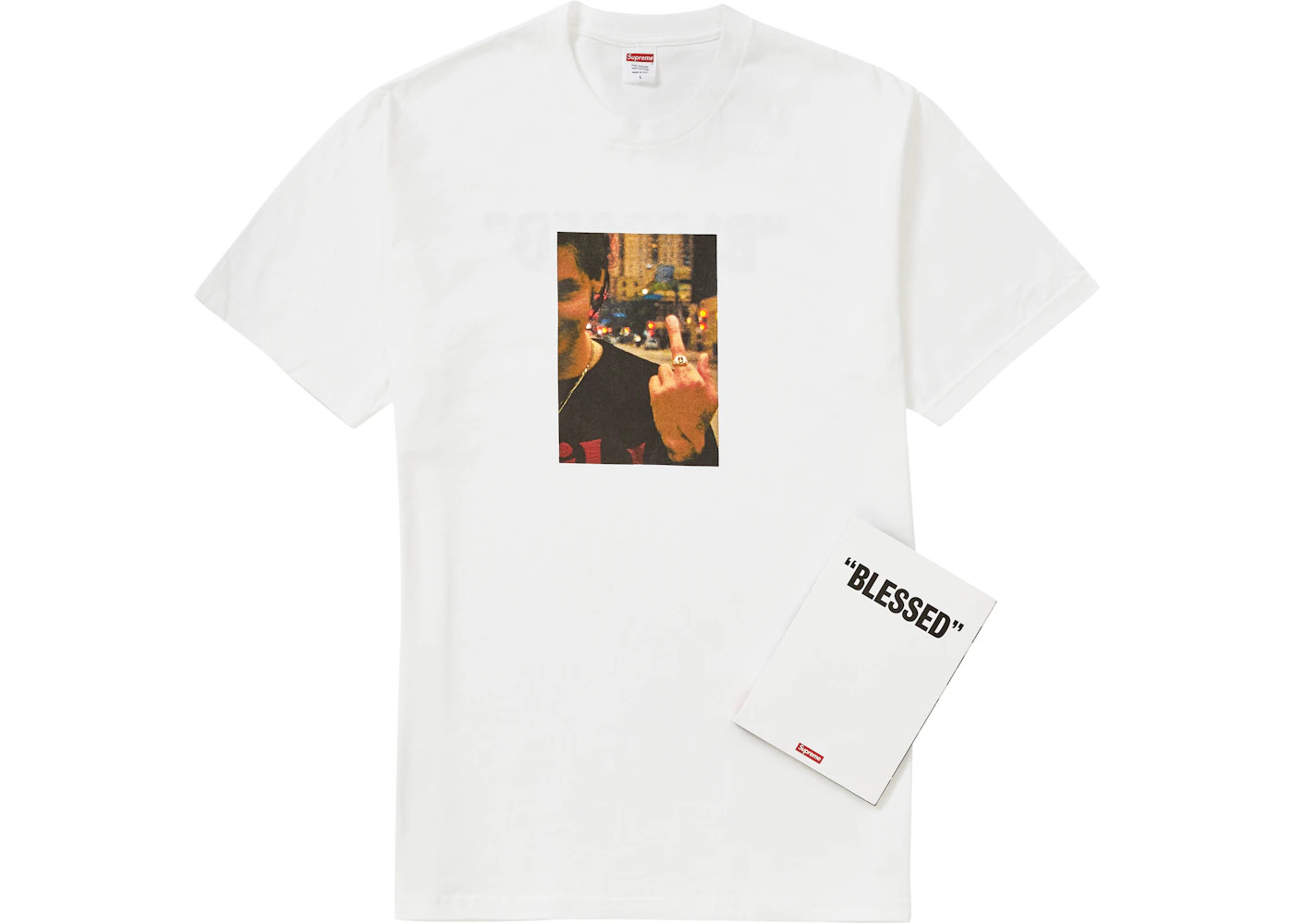 Disclaimer: This listing is for a bundle that includes the Blessed Tee, DVD, and photobook.Feeling blessed? Well Supreme certainly is. To commemorate the release of their "Blessed" film, Supreme released a bundle that included a DVD, photobook, and limited edition Blessed Tee on November 23rd, 2018. This bundle retailed for $48 and sold out immediately in Supreme retail stores and online. Following the success of Supreme's "Cherry" film in 2014, these items are sure to become a classic. Place a bid today to secure a piece of Supreme's storied history. - Season FW18 - Color White - Release Date 2018-11-23 - Retail Price 48 - Featured false