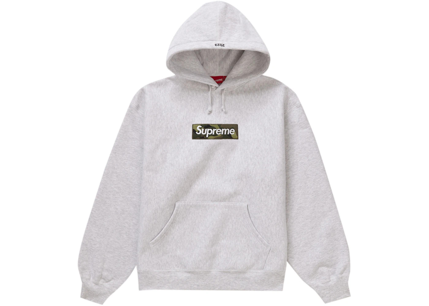 The highly anticipated Supreme Box Logo Hooded Sweatshirt Ash Grey released December 7, 2023 as part of Supreme Fall-Winter 2023 Week 16. Ash Grey with Camo Box Logo was the most hyped color of the FW23 Box Logo Hoodies, modeled iconically by NIGO. New this season, The Supreme Box Logo Hooded Sweatshirt Ash Grey has the year 2023 embroidered on the hood. The Supreme Box Logo Hoodie is made of heavyweight crossgrain brushed-back fleece with rib gussets and pouch pocket with a retail price of $168. - Season FW23 - Color Ash Grey - Release Date 2023-12-07 - Retail Price 168 - Featured false - Uploaded By LL