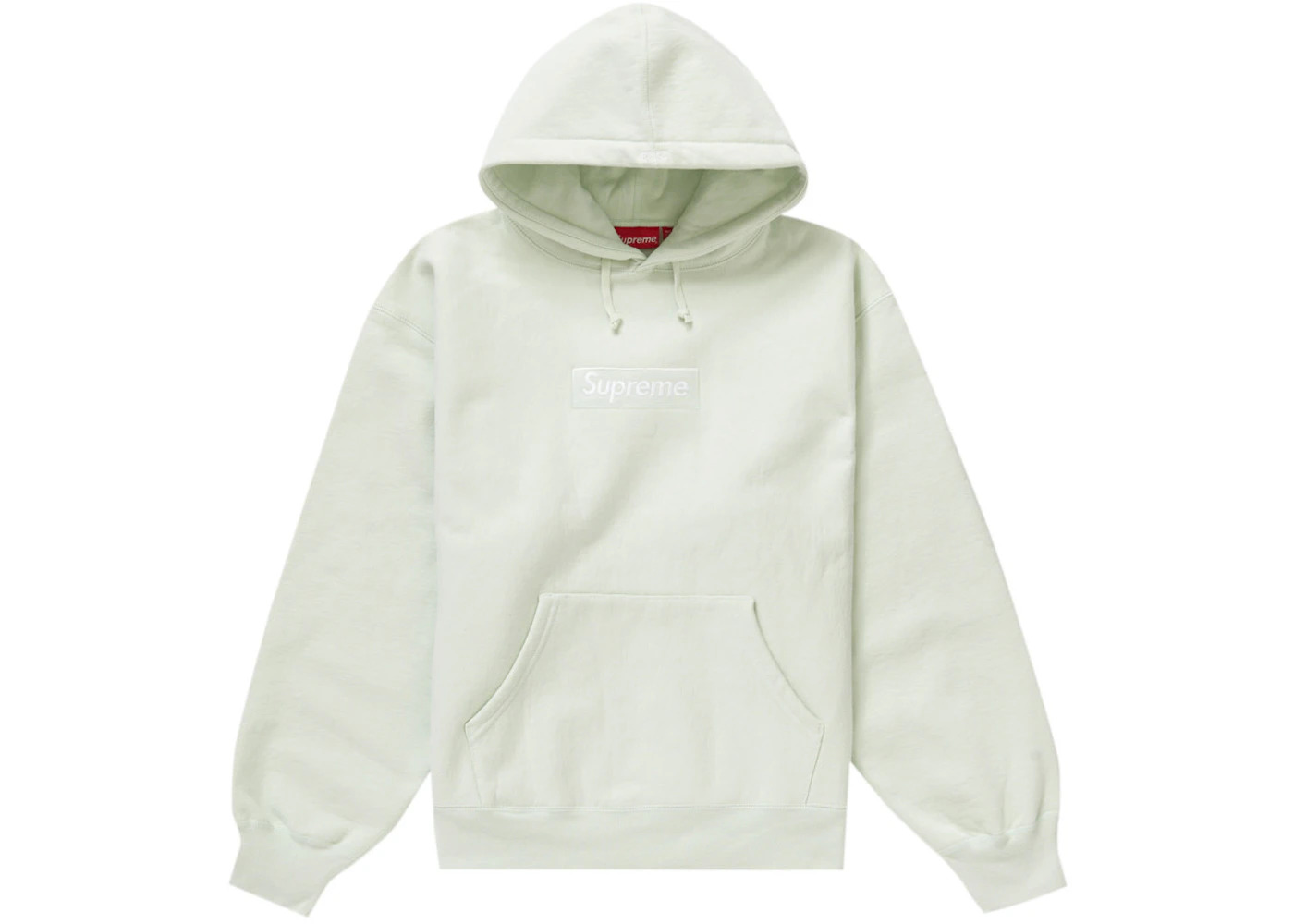 Supreme's instantly recognizable box logo has been featured on many Supreme T-shirts, hoodies, and other apparel since first being introduced in 1994. For its Fall/Winter 2023 collection, Supreme included it on the front of the Supreme Box Logo Hooded Sweatshirt (FW23) Light Green. The Supreme box logo was one of the many features found on this hooded sweatshirt. From its brushed-back fleece composition to its huge pouch pocket on the front to its embroidered "2023" on the hood, there were other things that helped separate it from the hoodies manufactured by other brands. But we feel as though the Supreme box logo on this hooded sweatshirt was what truly made it stand out. It proved that this logo was still a huge hit among streetwear enthusiasts. The Supreme Box Logo Hooded Sweatshirt (FW23) Light Green was unveiled on December 7, 2023, when it first retailed for $168. - Season FW23 - Color Light Green - Release Date 2023-12-07 - Retail Price 168 - Featured false - Uploaded By LL