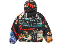 The Supreme City Lights Puffy Jacket Black is a quilted, water-resistant cotton jacket with an all-over print on a Black base. The print is photographic imagery of the New York City skyline at night, done on a seamless down-filled exterior with quilted baffles visible on the interior. The front features a zip and snap placket closure, accented by a removable hood. Additional features include a front hand, zip chest, and interior pockets. The Supreme logo appears within the print and on the interior red box logo woven label. NYC's massive expanse of pavement has made it a haven for skateboarding, fostering the growth and development of its streetwear brand, Supreme. In homage to its Big Apple origins, Supreme applies the wondrous New York City skyline in this Puffy Jacket Black as a print treatment, with Supreme’s logo blending into the artwork for added authenticity. In our opinion, the best feature of the City Lights Puffy Jacket is its cool and referential skyline print. The Supreme City Lights Puffy Jacket Black was released on March 5, 2020, and retailed for $348. - Season SS20 - Color Black - Release Date 2020-03-05 - Retail Price 348 - Featured false