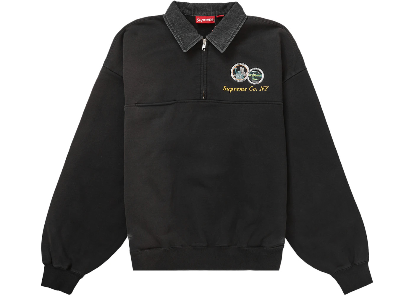 Supreme Denim Collar Half Zip Sweatshirt Black