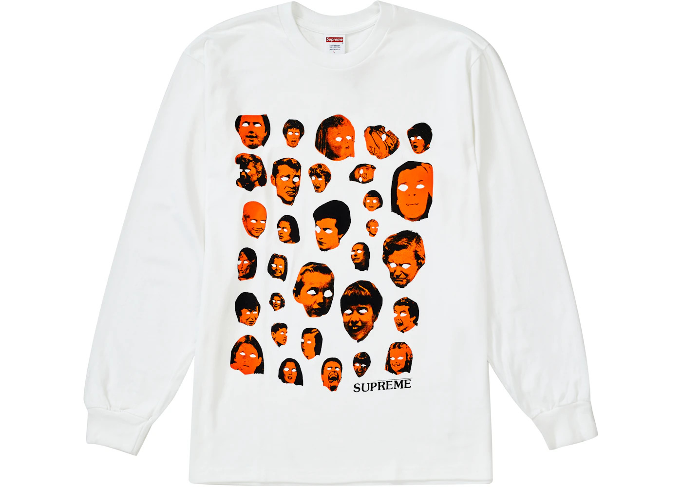 Released as a part of Supreme's Fall/Winter 2019 Week 1 drop, the Supreme Faces L/S Tee was one of the most eye-catching tees of the season. The tee dropped in eight different colorways and features multiple faces all over the front with their eyes cut out. The Supreme Faces L/S Tee released on August 22nd, 2019 and retailed for $40 USD. - Season FW19 - Color White - Release Date 2019-08-22 - Retail Price 40 - Featured false