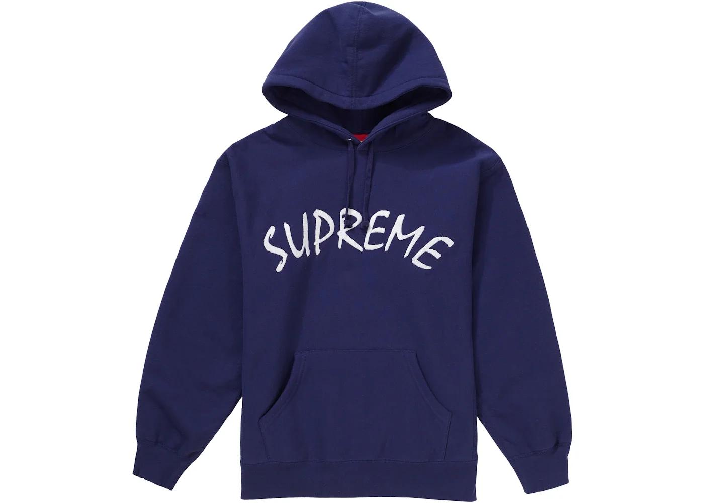 This Navy Supreme FTP Arc Hoodie was part of the streetwear label's Spring/Summer Week 8 release and should not be confused with the similar-looking Supreme Yankees Hoodie. Both this Supreme Hoodie and the Yankees Hoodie feature the same FTP Logo, which is inspired by the cover of N.W.A.'s Straight Outta Compton. What sets this particular Supreme hoodie apart is its lack of any Yankees or MLB logos. Instead, this hoodie features simply the Supreme FTP Arc Logo embroidered on the chest of the brand's popular heavyweight crossgrain fleece. This Supreme Hoodie was made available on April 15th, 2021 at the retail price of $158 USD. - Season SS21 - Color Washed Navy - Release Date 2021-04-15 - Retail Price 158 - Featured false