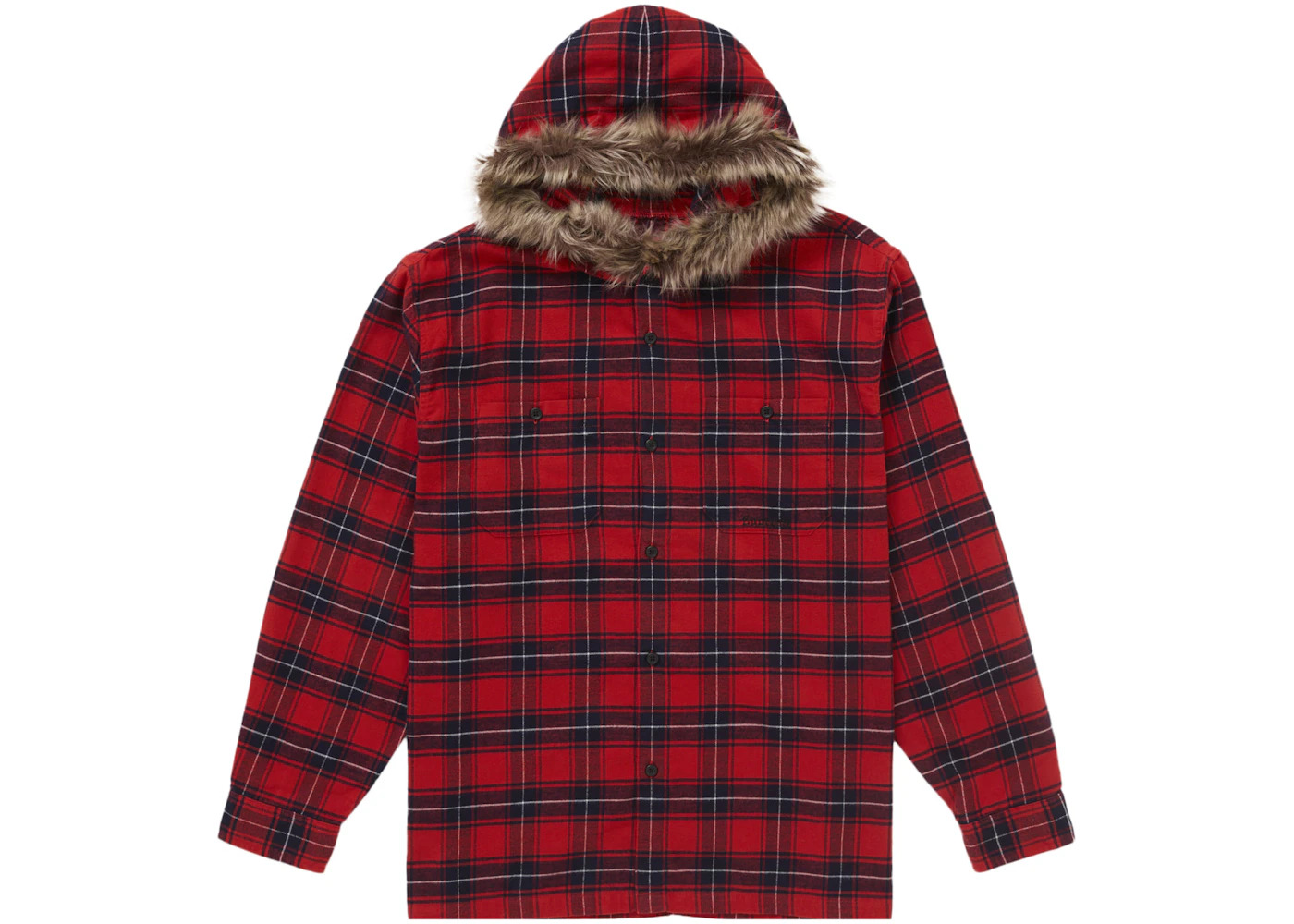 Supreme Fur Trim Flannel Hooded Shirt Red Plaid