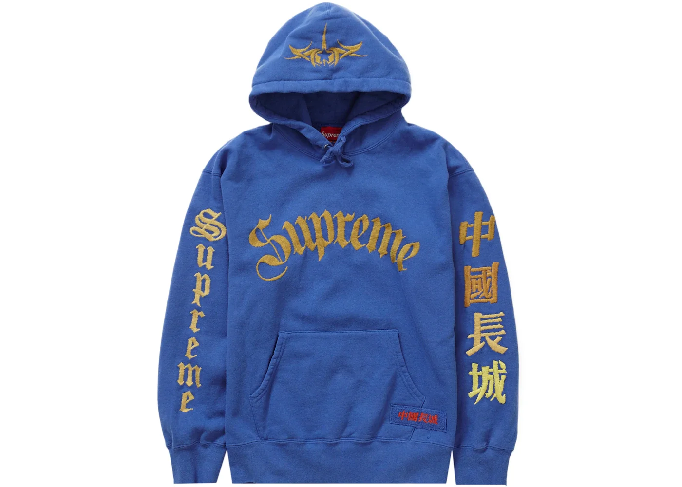 Supreme Great China Wall Sword Hooded Sweatshirt Washed Royal