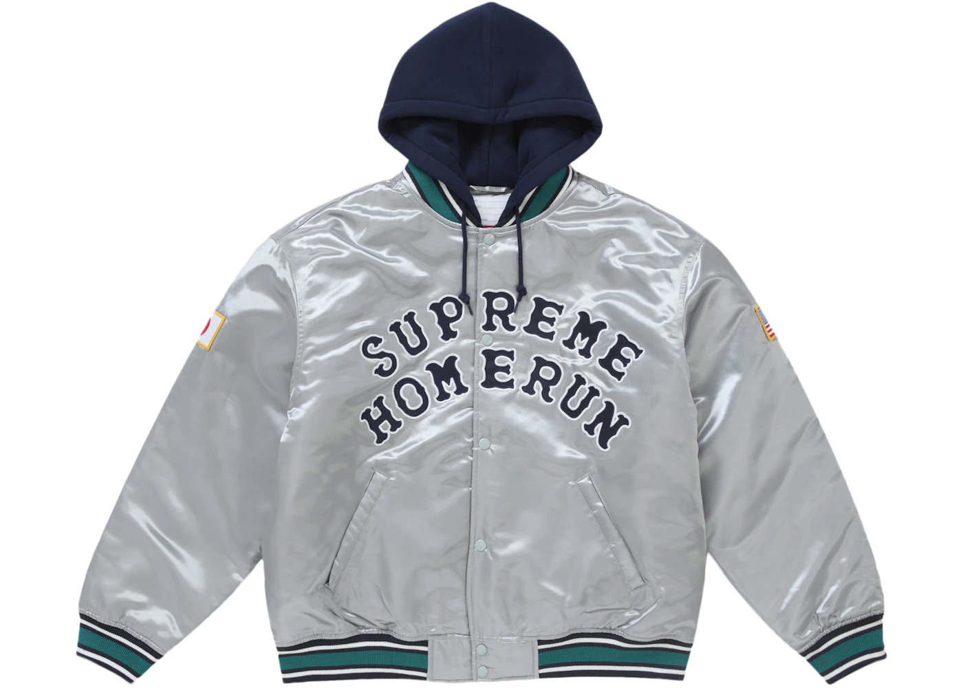 Supreme Homerun Satin Hooded Varsity Jacket Silver