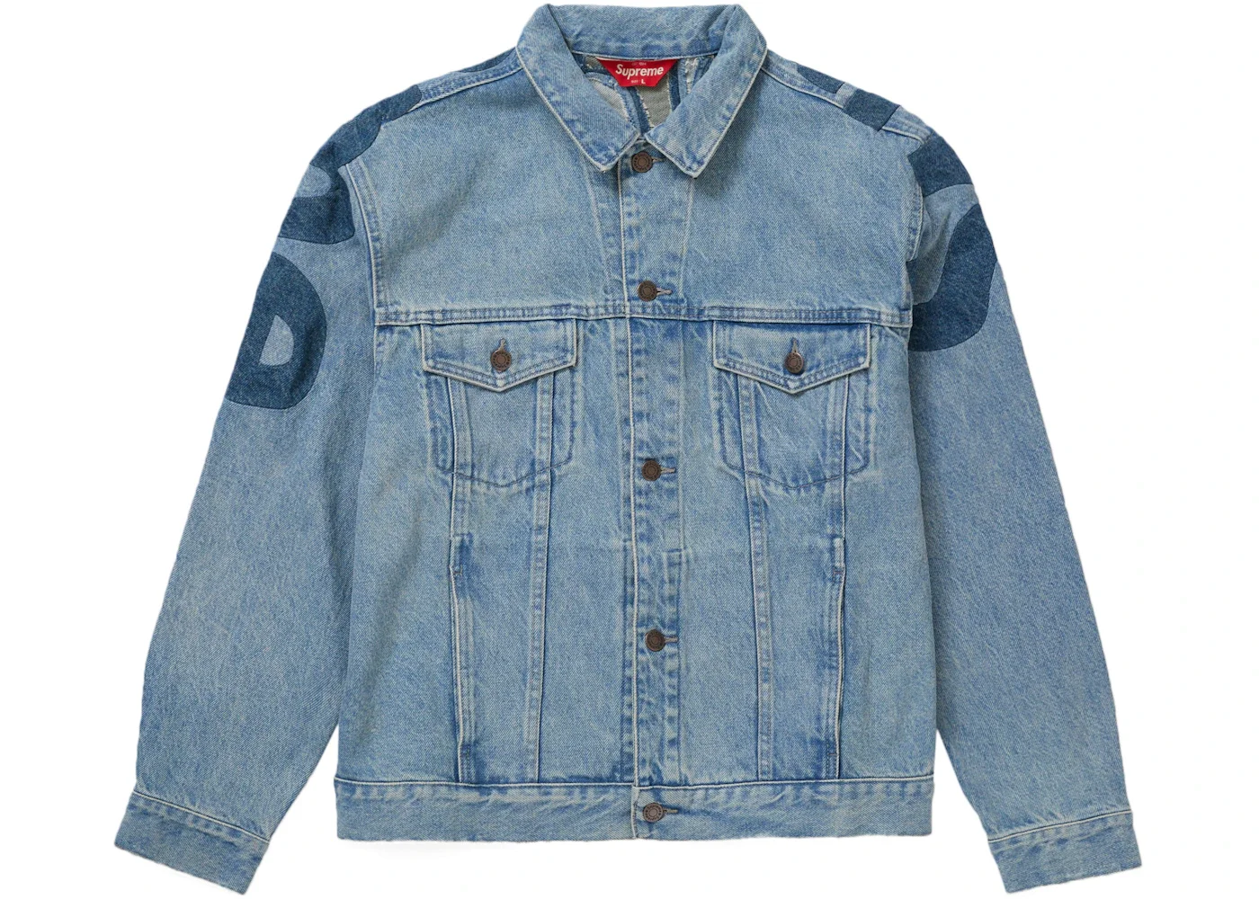 Supreme Inset Logo Denim Trucker Jacket Washed Blue
