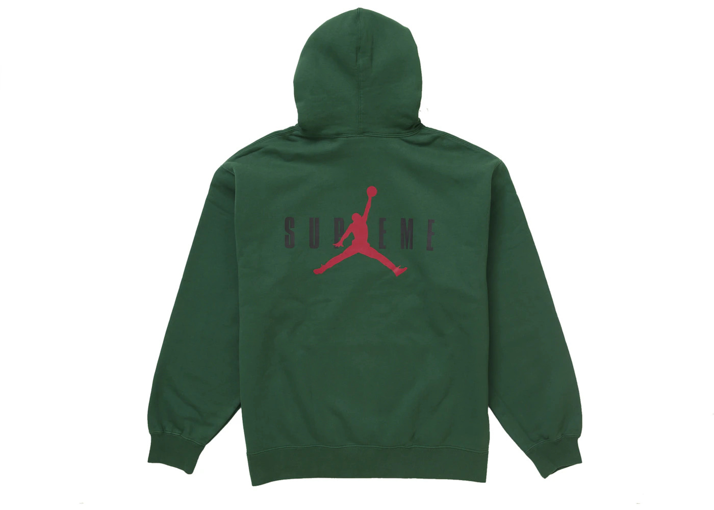 The Supreme Jordan Hooded Sweatshirt (FW24) Green is a collaboration long sleeved hoodie between two major brands, Supreme and Air Jordan. This hoodie was made exclusively for Supreme by the Air Jordan company. It is dressed in a bold green colorway and boasts an energetic and sporty aesthetic. The hood has drawstrings to cinch it closer to the head and keep the cold out. The ribbed cuffs and waist also have your comfort and warmth in mind. On the back of the hoodie is an innovative graphic that blends the Air Jordan and Supreme brands. A large red Jumpman logo takes the place of the "R" in the capitalized SUPREME lettering. This same co-branded logo is on the front left chest, albeit smaller. We think that this green hoodie makes an excellent addition to the closet of a Supreme or Michael Jordan fan. The Supreme Jordan Hooded Sweatshirt (FW24) Green was released on October 3, 2024, as part of the fall-winter 2024 collection with a $168 price tag. - Season FW24 - Color Green - Release Date 2024-10-03 - Retail Price 168 - Featured false - Requester Kelsey K - Uploaded By LL