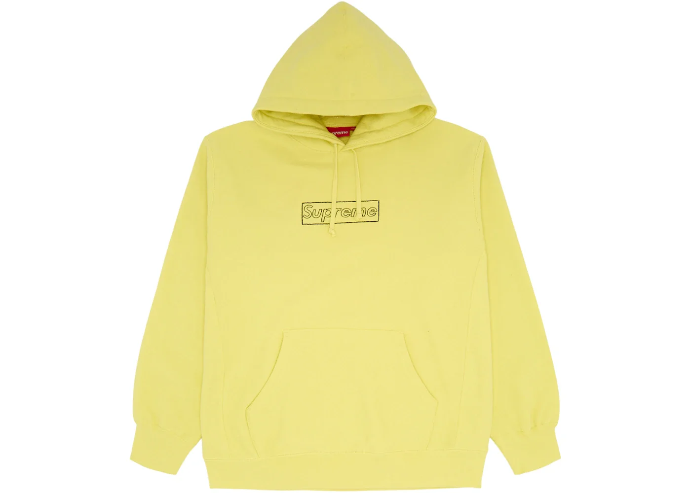 This yellow Supreme Hoodie was released as a part of the brand's first collaboration with KAWS in nearly a decade. Supreme and KAWS' last collaboration was in 2011 and featured t-shirts and hoodies with the same design as this collaboration. The Supreme KAWS Chalk Logo Hoodie features the artist's touch in the form of a chalk-drawn Box Logo on the chest. This Supreme hoodie was made available in seven different colors and five skate decks were also released. Supreme and KAWS' Chalk Logo Hoodie was dropped on February 18th, 2021, and was sold at a retail price of $158 USD. - Season SS21 - Color Light Lemon - Release Date 2021-02-18 - Retail Price 158 - Featured false