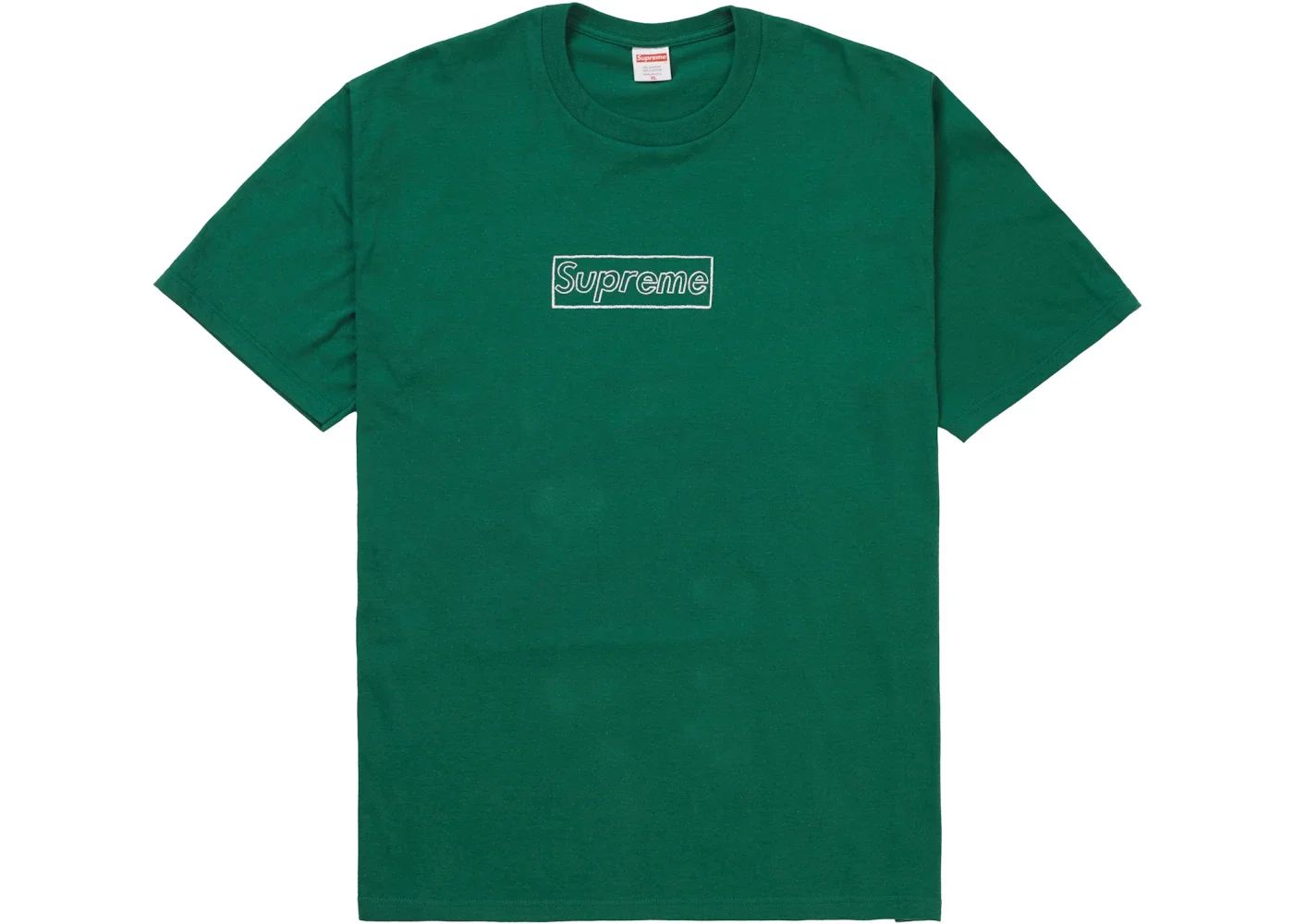 This Light Pine Supreme KAWS Chalk Logo T-shirt was made available in June of 2021 as a part of the brand's Spring/Summer 2021 Summer Tees delivery. The full Supreme release included seven new graphic t-shirts. This particular t-shirt features a Supreme KAWS Chalk Logo in white on the chest of a Light Pine cotton t-shirt. The Supreme KAWS Chalk Logo T-shirt in Light Pine was released on June 24th, 2021, at the retail price of $38. - Season SS21 - Color Light Pine - Release Date 2021-06-24 - Retail Price 38 - Featured false