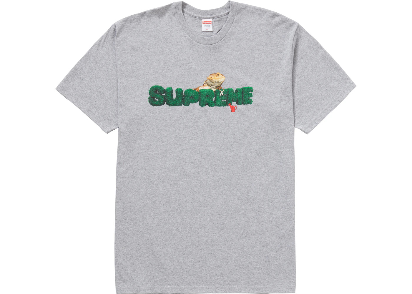 The Supreme Lizard Tee Heather Gray captures the beauty of a minimalist design combined with animal-inspired aesthetics on a classic t-shirt silhouette. The Supreme Lizard Tee comes in a heather gray colorway on its cotton fabric. The material used offers a soft and breathable interior and exterior. Sleeves on the t-shirt are short and feature a classic padded cuff to match the simple finish on the rib knit crewneck. The striking feature of the t-shirt is the front graphic that features the Supreme branding across the chest in green with black outlines on the text. A lizard torso cowers atop the Supreme lettering and a red accent streak below the "M." The back of the t-shirt is plain, completing the silhouette. What do our experts think about the gray Supreme Lizard Tee Heather? StockX experts like the modern approach to the classic silhouette of the t-shirt, and its playful graphic. The Supreme Lizard Tee Heather Gray was released on July 2, 2020, and retailed at $38. - Season SS20 - Color Heather Grey - Release Date 2020-07-02 - Retail Price 38 - Featured false