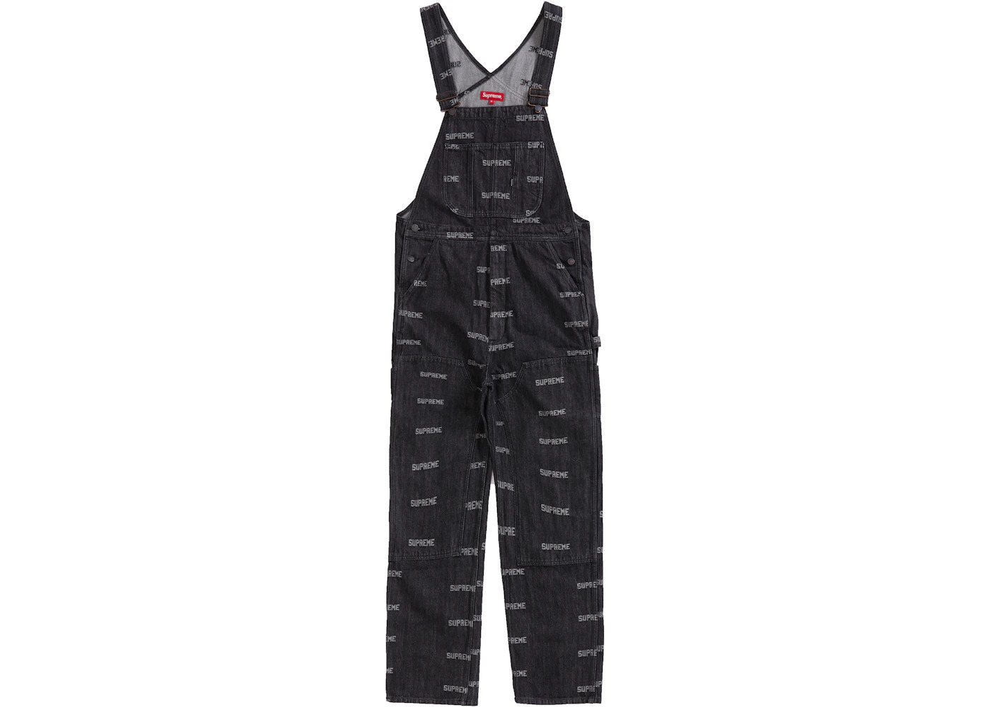 Supreme Logo Denim Overalls Black