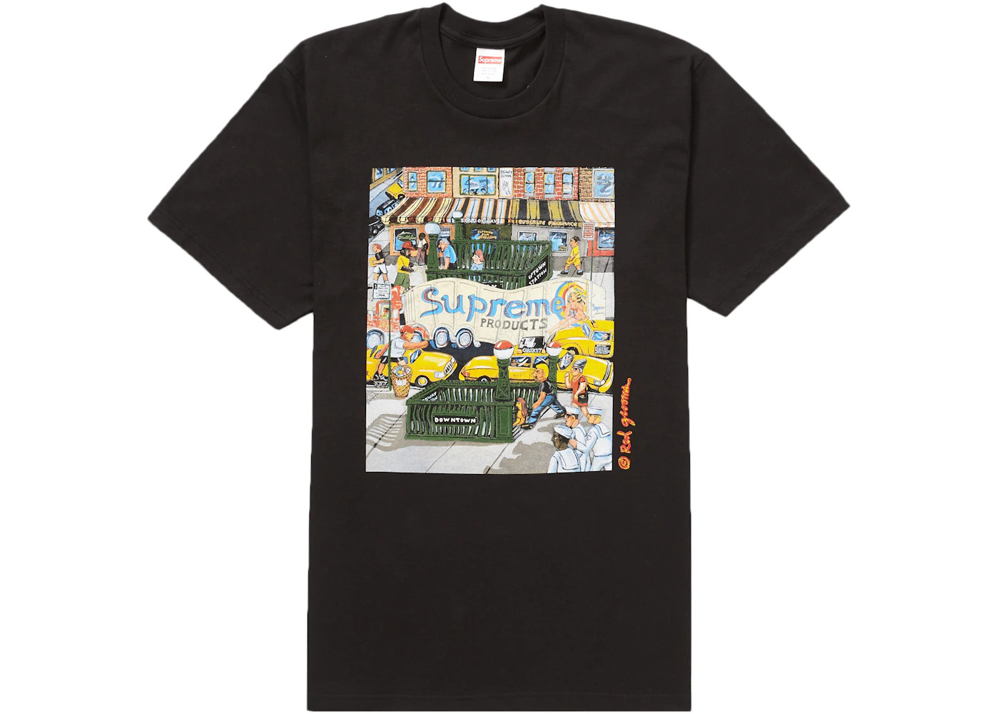 The back of the Supreme Manhattan Tee Black has a printed "Supreme Manhattan" logo, while the front has a printed graphic. This t-shirt comes in black. The printed cartoon image on the front of the Manhattan Tee shows a Manhattan street in New York City. One can quickly notice the yellow cabs and a subway entrance in this product's printed cartoon graphic, which are among the images that represent Manhattan Street. On June 30, 2022, the Supreme Manhattan Tee Black hit the market for the first time. This product had a $40 suggested retail price at the time of its introduction to the market. - Season SS22 - Color Black - Release Date 2022-06-30 - Retail Price 40 - Featured false