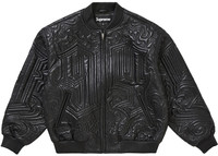 Supreme Mister Cartoon Embroidered Leather Jacket Black