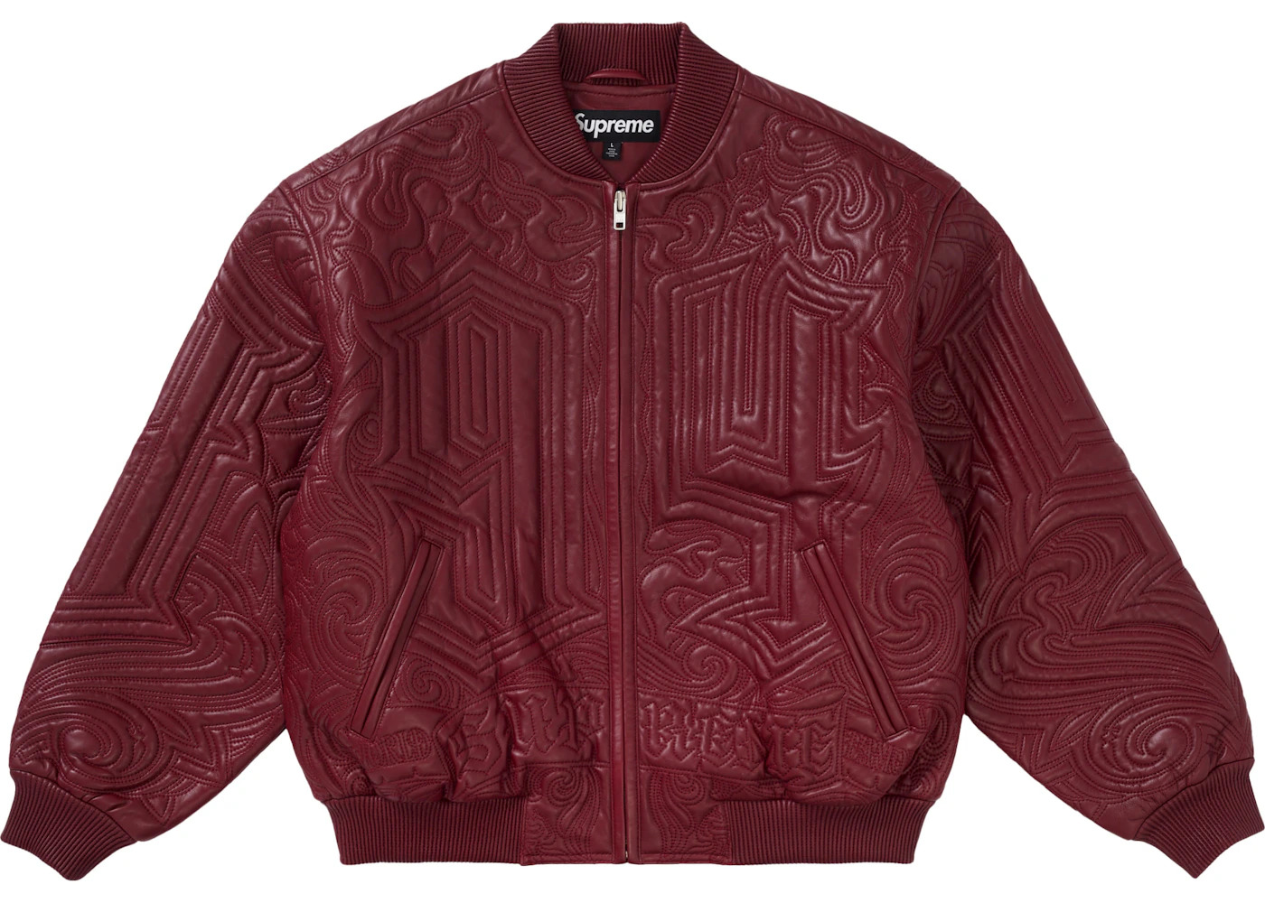 Supreme Mister Cartoon Embroidered Leather Jacket Burgundy