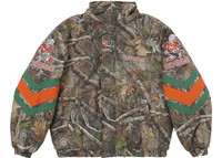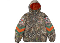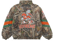The Supreme Mitchell & Ness NCAA Hooded Stadium Jacket in Woodland Camo is a striking collaboration that combines streetwear style with collegiate flair. This jacket features a bold woodland camouflage pattern, perfect for those who want to make a statement while staying warm. The design incorporates elements from the University of Miami Athletics, including nods to their mascot, Sebastian the Ibis, making it a must-have for fans and fashion enthusiasts alike.Crafted with attention to detail, this hooded stadium jacket offers both style and functionality. The hood provides extra protection from the elements, while the jacket's construction ensures durability for long-lasting wear. As part of Supreme's FW24 collection, this piece showcases the brand's commitment to creating unique, eye-catching streetwear that pushes the boundaries of fashion.Us at StockX believe this product is great for those who appreciate the intersection of sports culture and high-end streetwear, offering a perfect blend of comfort, style, and collegiate pride. - Season FW24 - Color Woodland Camo - Release Date 2024-11-07 - Retail Price 328 - Featured false - Requester Kelsey K - Uploaded By LL