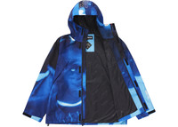 Constructed of waterproof, breathable GORE-TEX poly, the Supreme Nas and DMX GORE-TEX Shell Jacket boasts a blue tonal graphic from the iconic Hype Williams film Belly. A portrait of Nas is featured on the front of the jacket while DMX's face is prominent on the back. To customize the fit, interior elastic shock cords can be found in the hood and hem. From there, embroidered logos on the hood and sleeve complete the design. The Supreme Nas and DMX GORE-TEX Shell Jacket released as part of the Supreme Fall / Winter 2021 collection and retailed for $398. - Season FW21 - Color Multicolor - Release Date 2021-08-19 - Retail Price 398 - Featured false