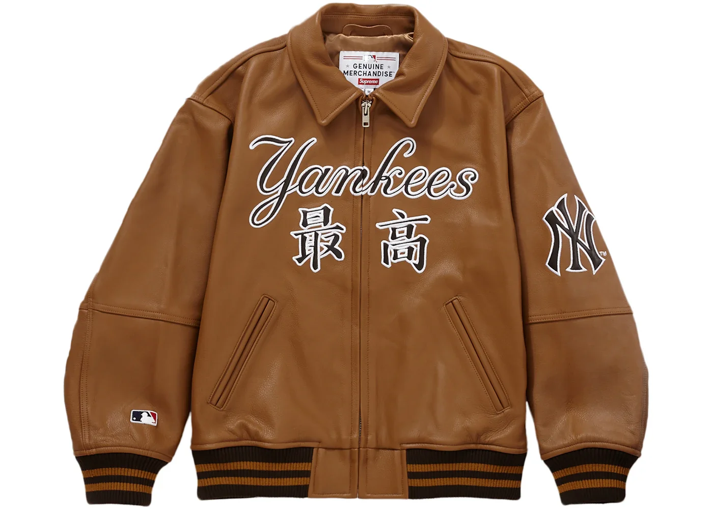Supreme New York Yankees Kanji Leather Varsity Jacket Brown