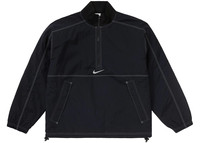 The Supreme Nike Ripstop Pullover Black is a robust outdoor tracksuit-style jacket with exceptional water and wind resistance. Its rugged design features sectioned panels separated by reflective top stitching. This Nike pullover is made exclusively for Supreme. Its nylon outer has a soft lining of quilted taffeta. In solid black, it has a half-zip front closure reinforced with an interior elastic shock cord at the waist hem. Elasticated cuffs help keep the elements out. A small white Nike Swoosh is in the middle of the chest, with a larger version in twill applique on the back. Our experts call this a genuine article because it provides all the weather protection it promises. It has a warm knitted ribbed collar and a welt zip front pocket for one's hands. As the name implies, the ripstop fabric also protects against scuffs and tears. The Supreme Nike Ripstop Pullover Black was released on April 18, 2024, and retailed at $168. - Season SS24 - Color Black - Release Date 2024-04-18 - Retail Price 168 - Featured false - Requester Kelsey K - Uploaded By LL