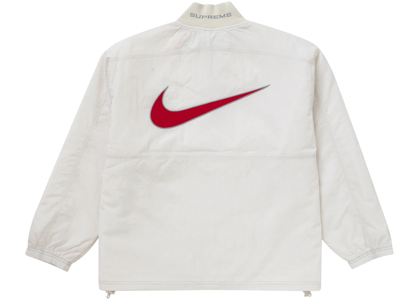 The Supreme Nike Ripstop Pullover White illustrates the collaboration between Supreme and Nike, which blends modern streetwear with functional athletic clothing. Highlighted in their Spring 2024 collection, this piece stands out visually and practically to appeal to fans of minimal designs. The White Ripstop Pullover by Supreme and Nike features a water-resistant nylon ripstop material for weather resistance and breathability. Its clean white design includes subtle Nike branding on the back and front and Supreme’s signature logo on the collar. Released as part of the collaborative Spring 2024 collection, the pullover comes in a neutral white tone, ideal for an adaptable wardrobe. The pullover represents the strong creative alliance between these two global brands. One thing we like about the Supreme Nike Ripstop Pullover White is its high neckline and semi-elastic cuffs, which add to the aesthetic. Additionally, the minimalist branding strikes a balance between subtlety and recognizability. It retailed at $168 when released on April 18, 2024. - Season SS24 - Color White - Release Date 2024-04-18 - Retail Price 168 - Featured false - Requester Kelsey K - Uploaded By LL