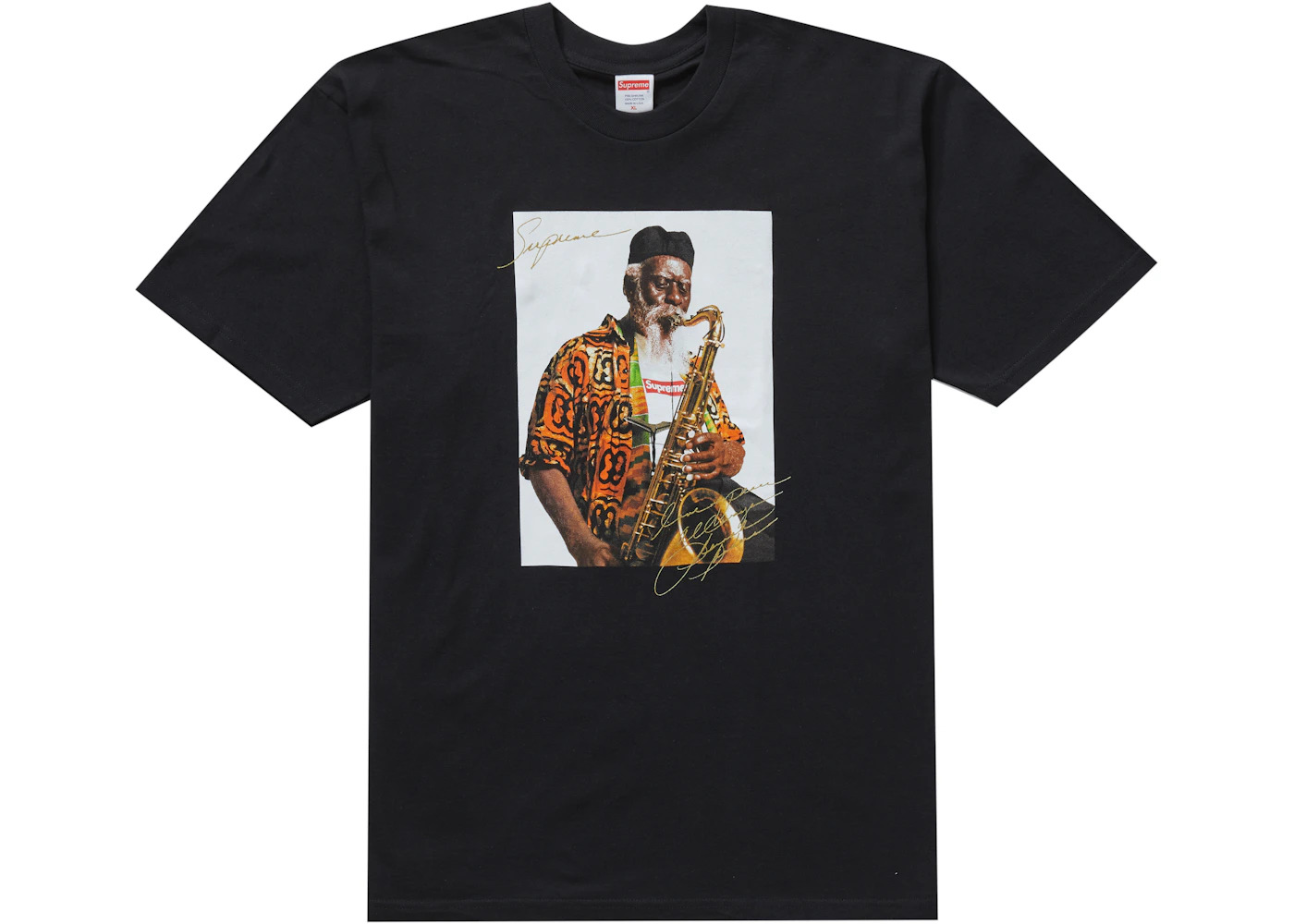 Supreme Photo Tees returned via the Pharoah Sanders T-shirt in FW20 after the Buju Banton T-shirt in SS20. As is customary of a photo tee, the Supreme Pharoah Sanders T-shirt features an image of the Grammy-winning saxophonist playing his sax in a Supreme Box Logo T-shirt. The black Supreme Pharoah Sanders T-shirt dropped in August, 2020, and retailed for $48 USD. - Season FW20 - Color Black - Release Date 2020-08-20 - Retail Price 48 - Featured false