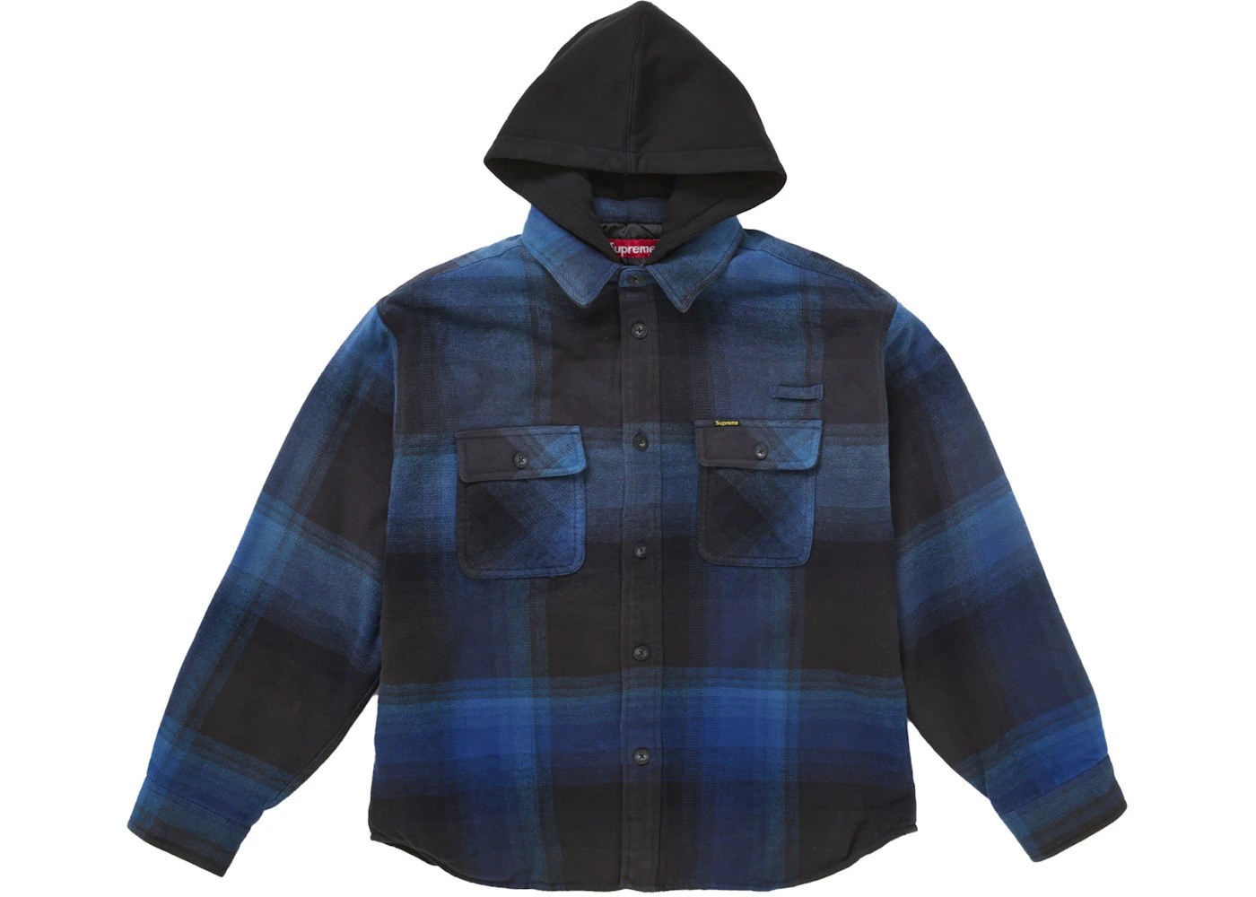 Supreme Quilted Lined Hooded Flannel Shirt Blue Plaid