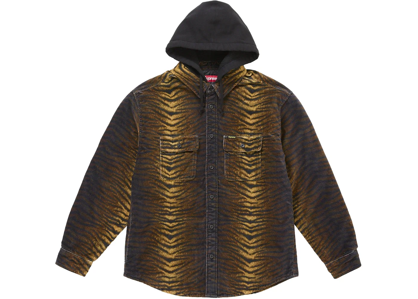 Supreme Quilted Lined Hooded Velvet Shirt Tiger