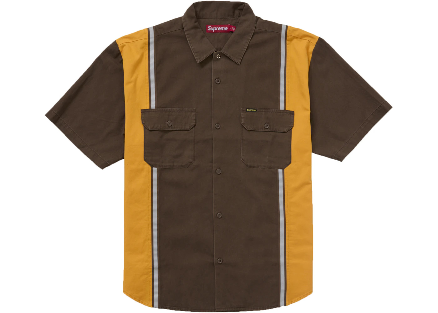 Supreme Reflective Stripe S/S Work Shirt Brown