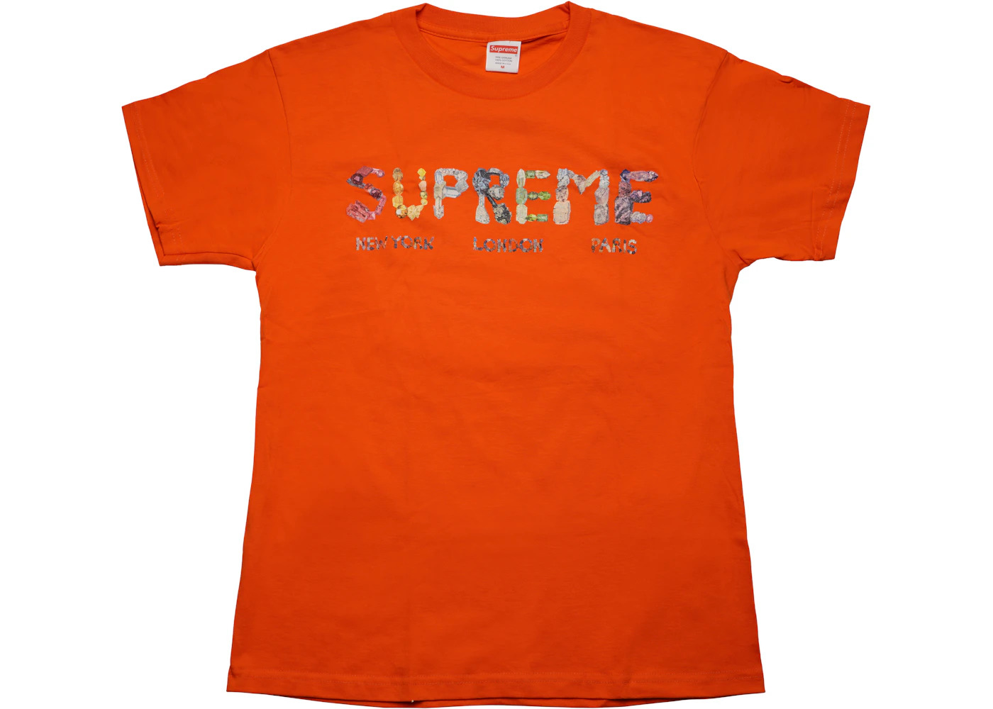 The Supreme Rocks Tee was released during the summer of 2018 and became an instant hit. The tee features the the word "Supreme" spelled out in colored rocks with the cities New York, London, and Paris beneath it also spelled out in colored rocks. The tee dropped on June 28th, 2018 and retailed at $36 USD. Cop in your size today, or list an ask to cash in. - Season SS18 - Color Orange - Release Date 2018-06-28 - Retail Price 36 - Featured false