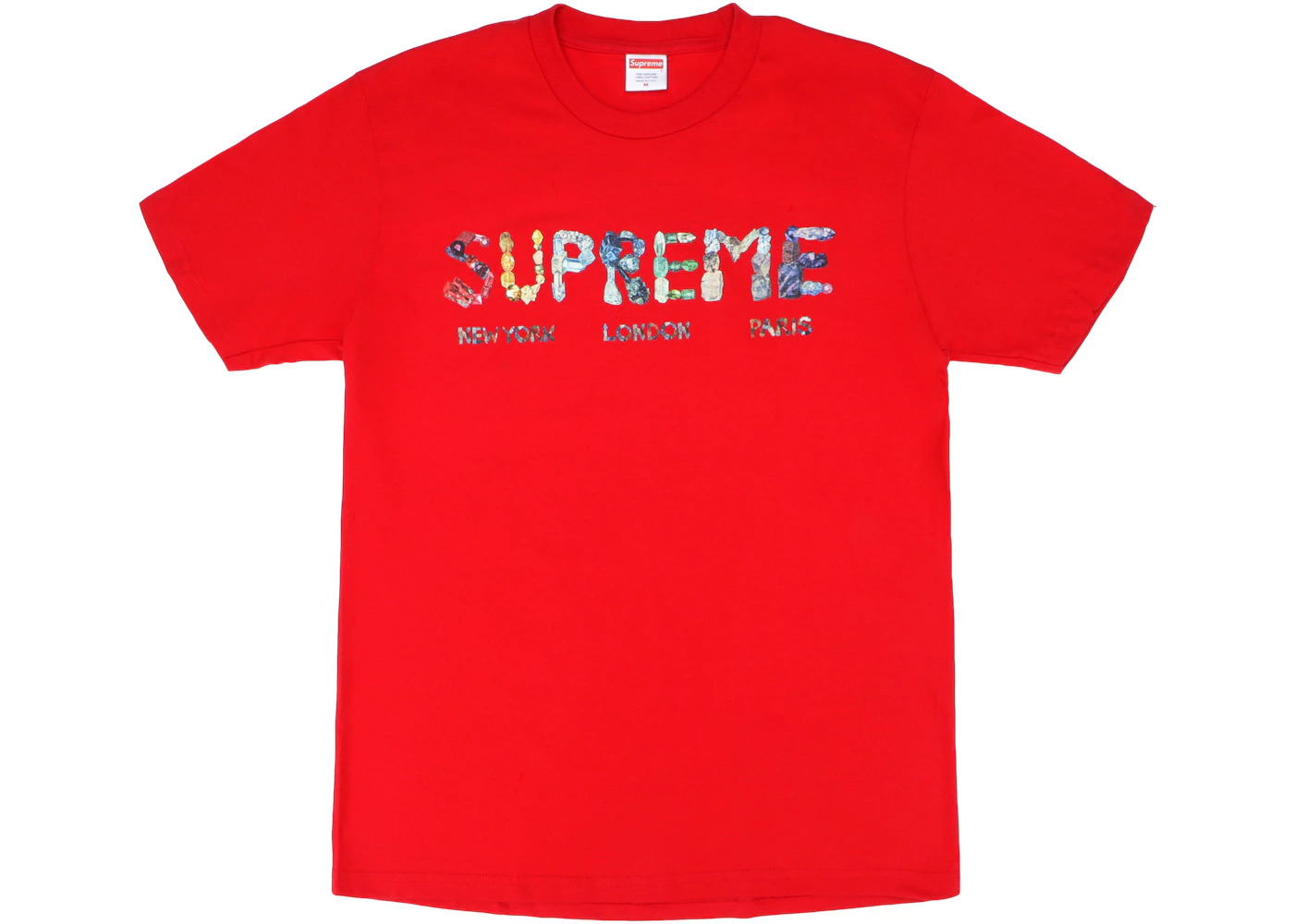The Supreme Rocks Tee was released during the summer of 2018 and became an instant hit. The tee features the the word "Supreme" spelled out in colored rocks with the cities New York, London, and Paris beneath it also spelled out in colored rocks. The tee dropped on June 28th, 2018 and retailed at $36 USD. Cop in your size today, or list an ask to cash in. - Season SS18 - Color Red - Release Date 2018-06-28 - Retail Price 36 - Featured false