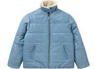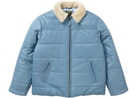 Supreme Schott Shearling Collar Leather Puffy Jacket Light Blue